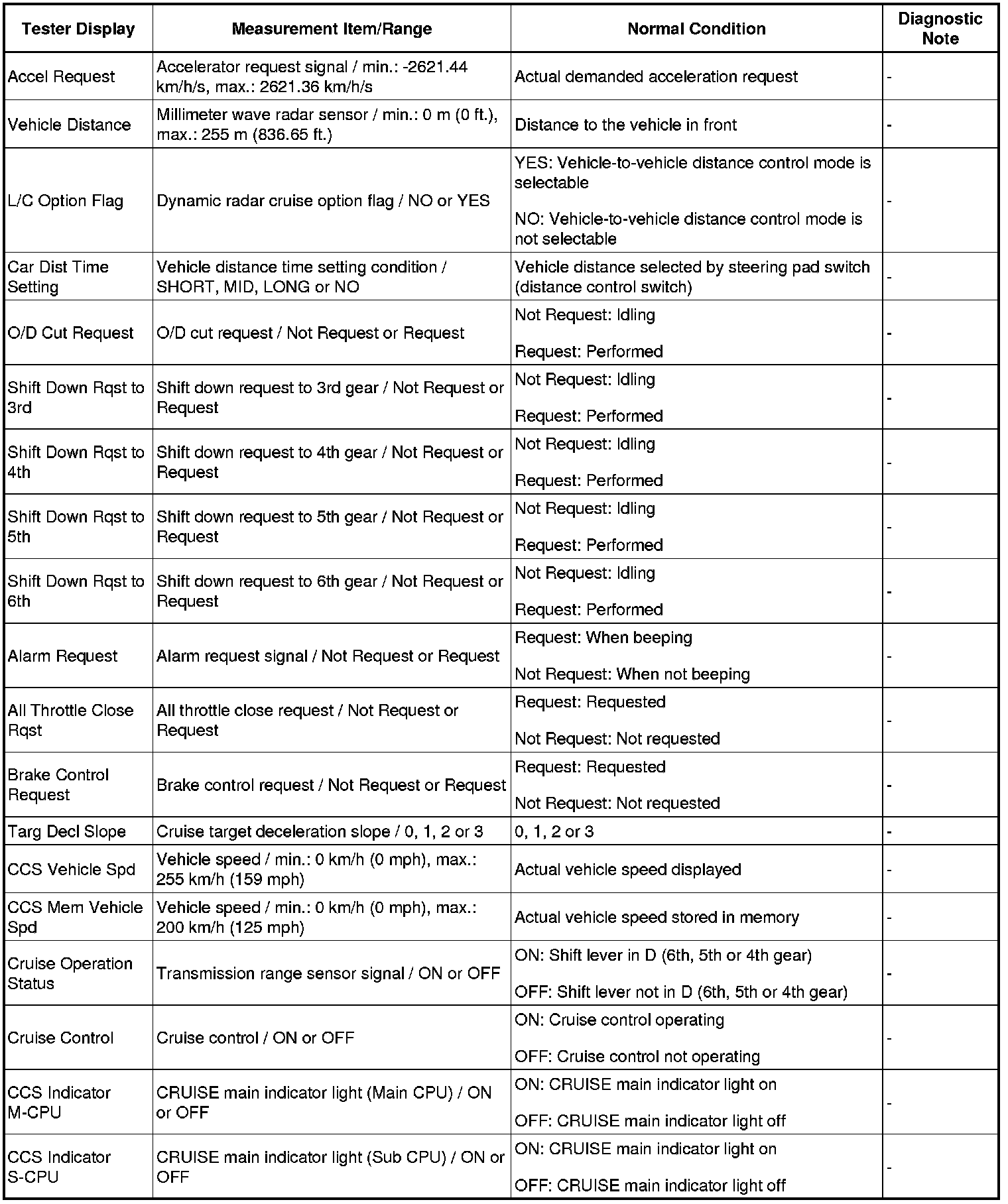CRUISE CONTROL: DYNAMIC RADAR CRUISE CONTROL SYSTEM: DATA LIST / ACTIVE TEST