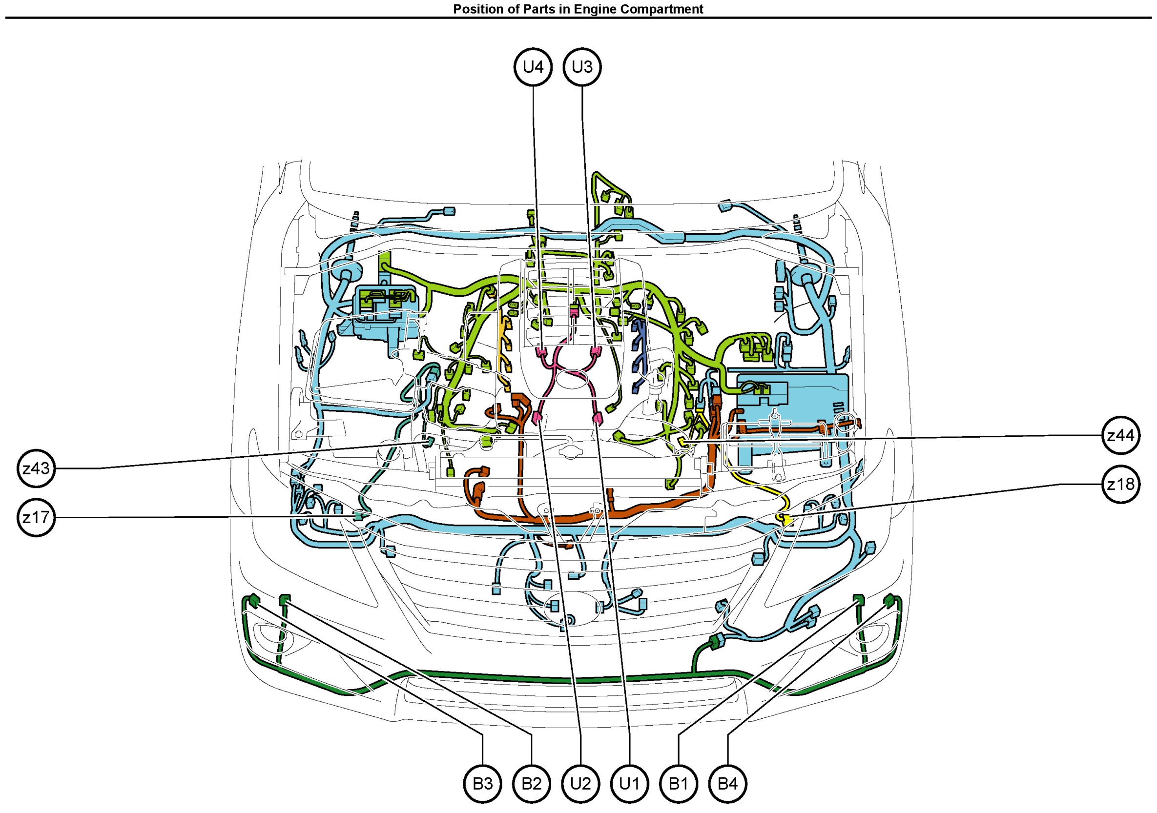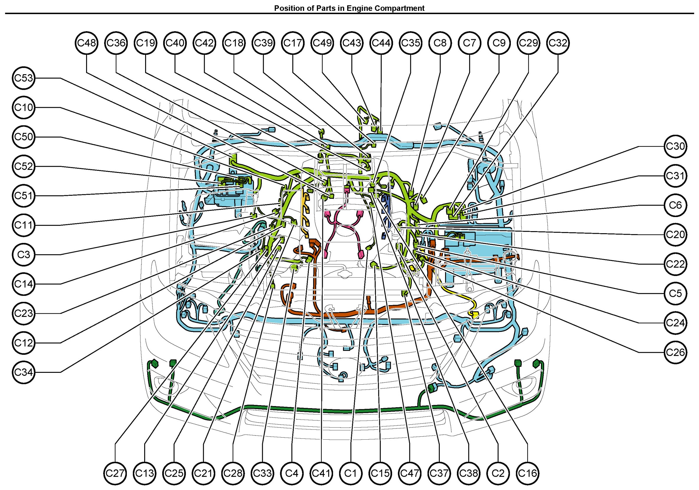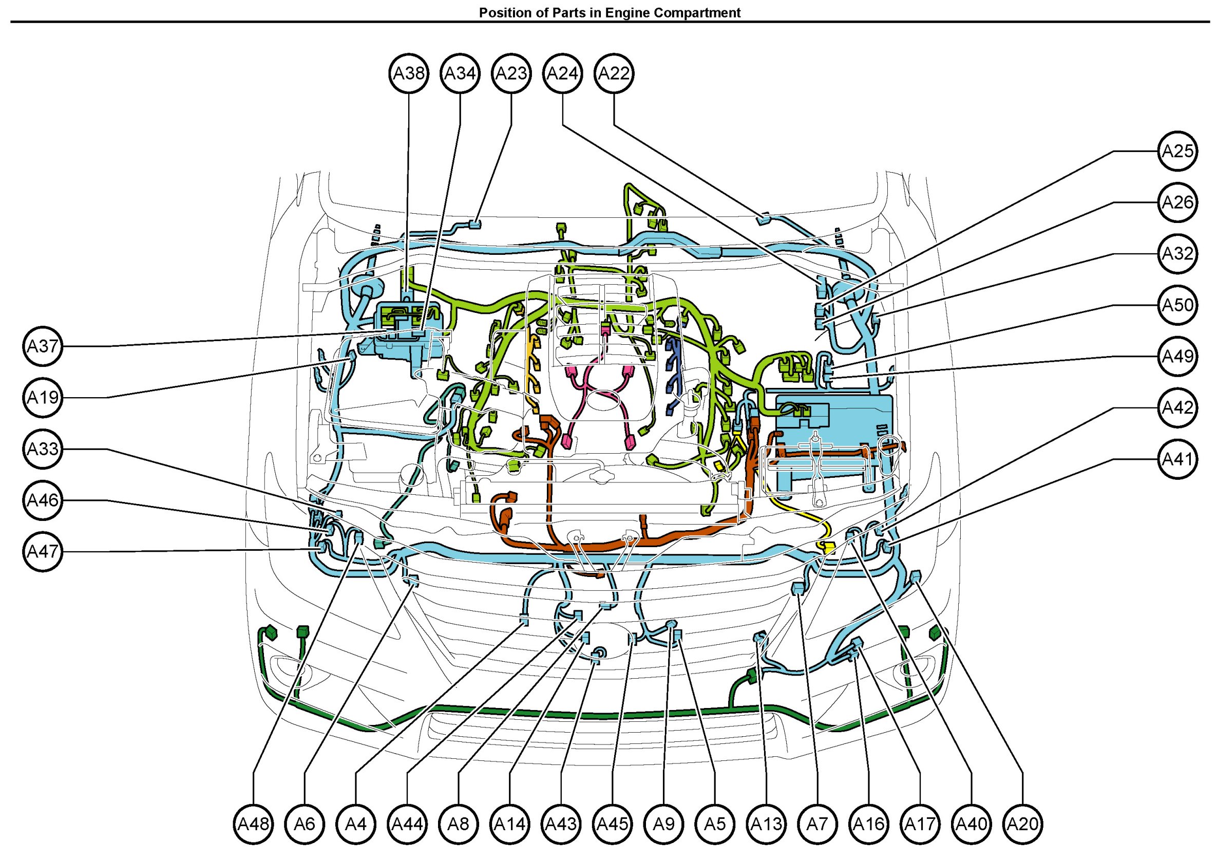 Position of Parts In Engine Compartment