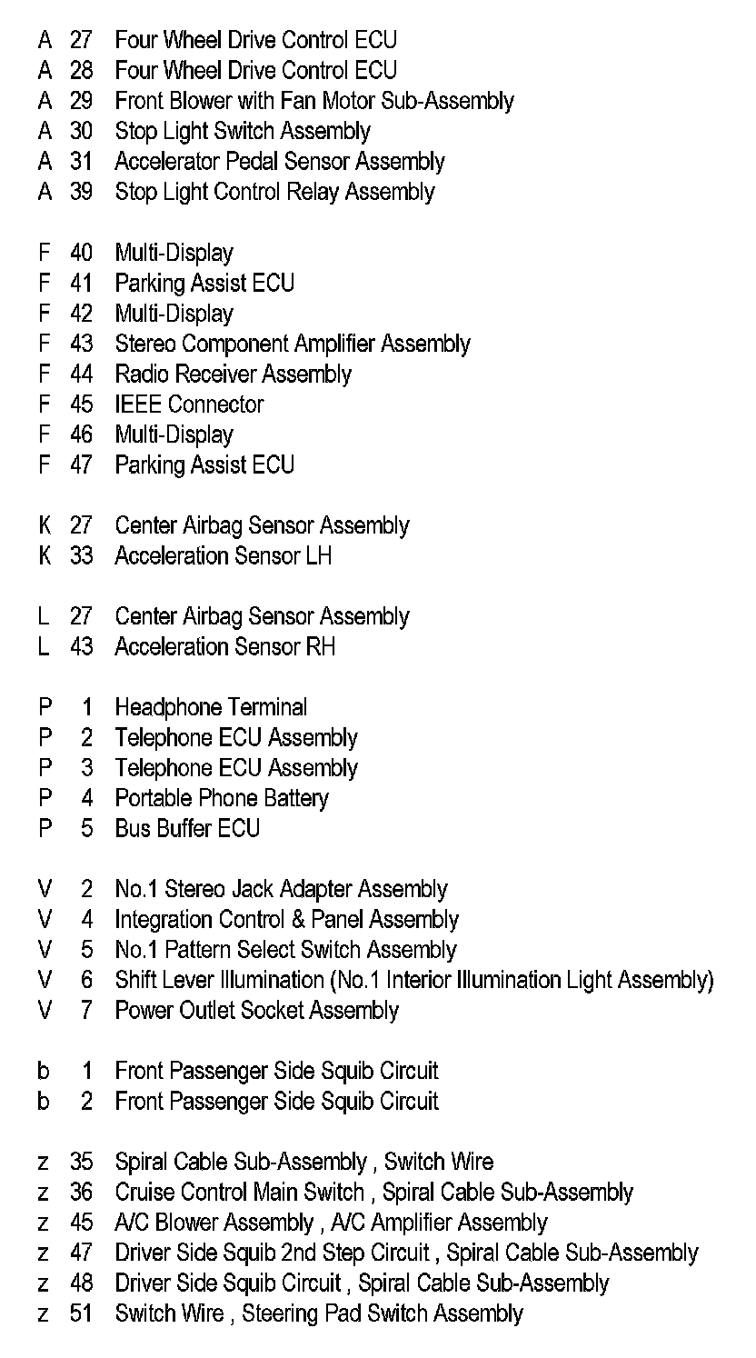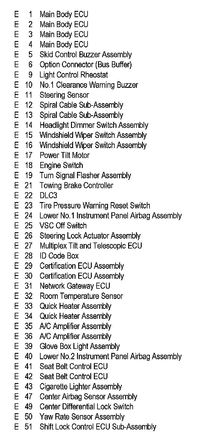 Position of Parts In Instrument Panel
