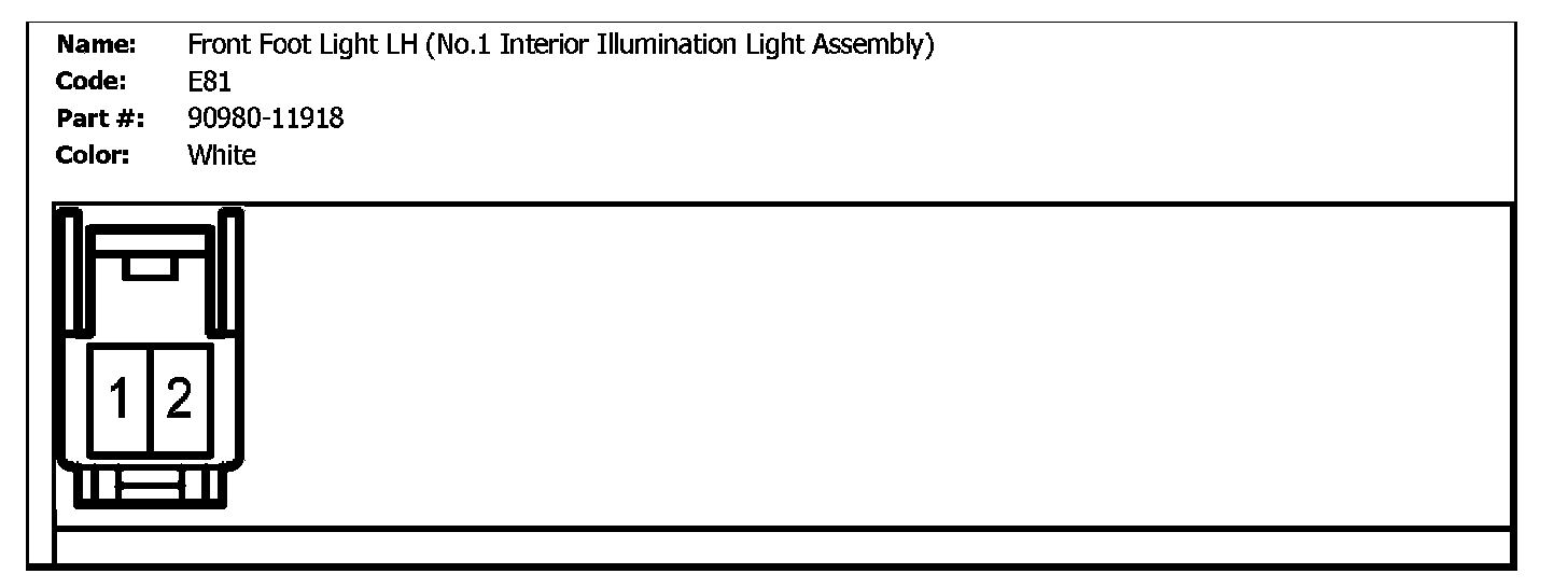 E81 (Front Foot Light LH (No.1 Interior Illumination Light Assembly)):