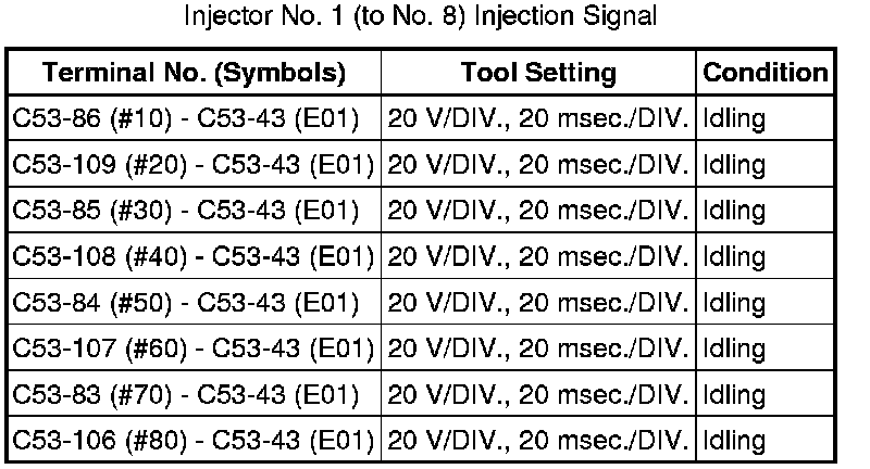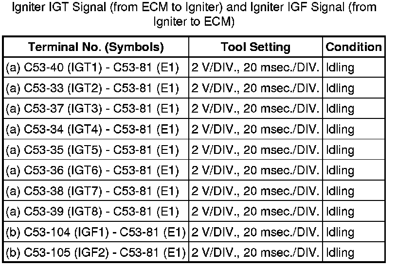 If the waveform is not similar to the illustration, check the waveform again after idling for 10 minutes or more.