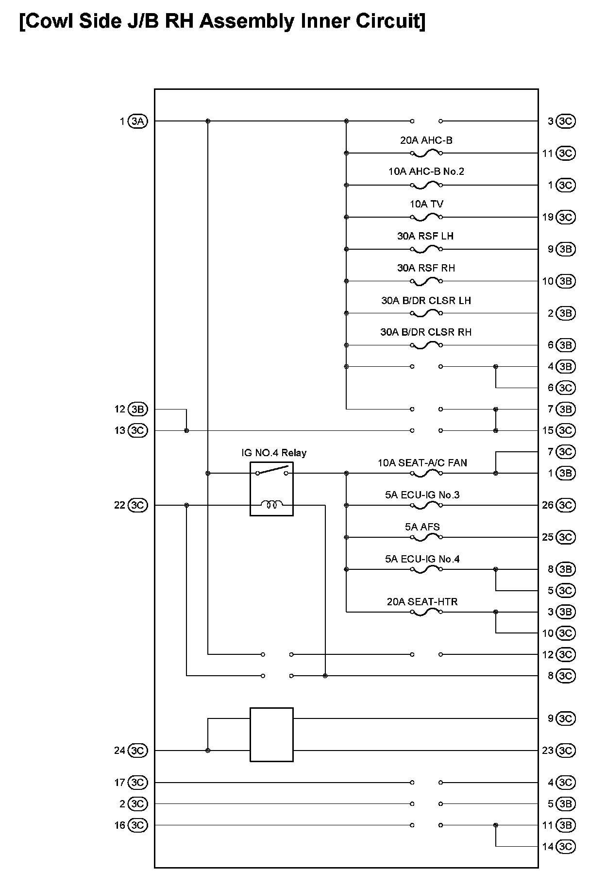 Cowl Side J/B RH Assembly Inner Circuit: