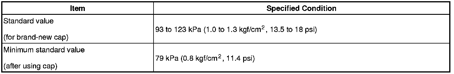 If the maximum pressure is less than the minimum standard value, replace the radiator cap sub-assembly.