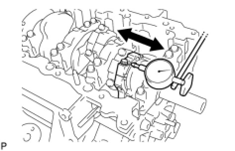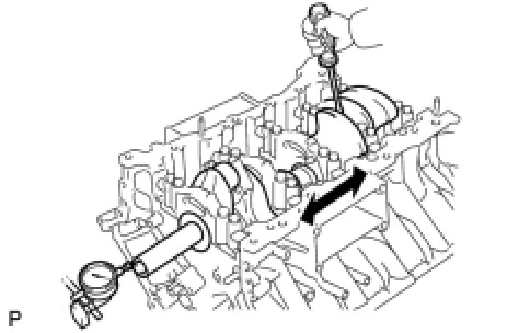 (a) Using a dial indicator, measure the thrust clearance while prying the crankshaft back and forth with a screwdriver.