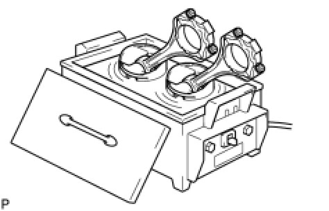 (a) Remove the connecting rod bearings from the connecting rods and connecting rod caps.