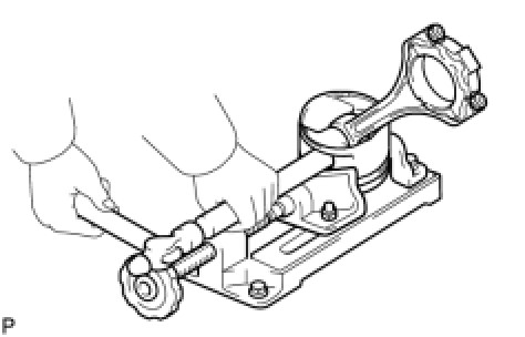 (3) Using a brass bar and plastic-faced hammer, lightly tap out the piston pin. Then remove the connecting rod.