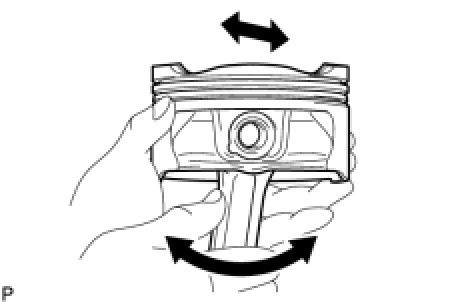 (2) Rotate the piston back and forth on the piston pin. Check the fitting condition.
