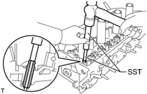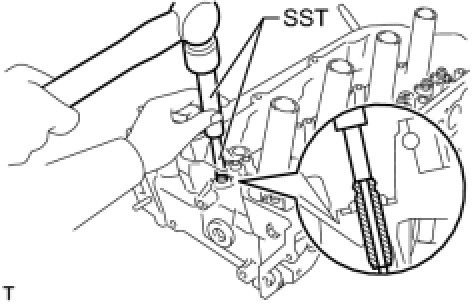 (c) Using SST and a hammer, tap out the valve guide bush.