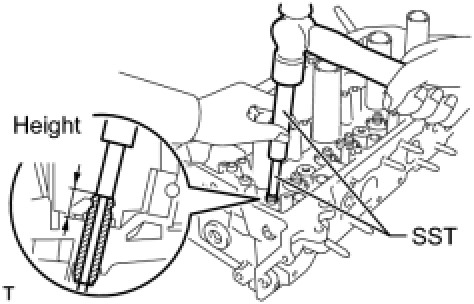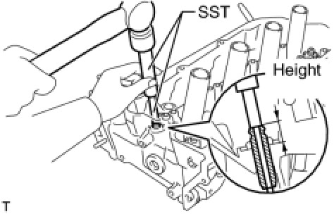 (c) Using a wooden block and hammer, tap in the spark plug tube to the specified protrusion height.