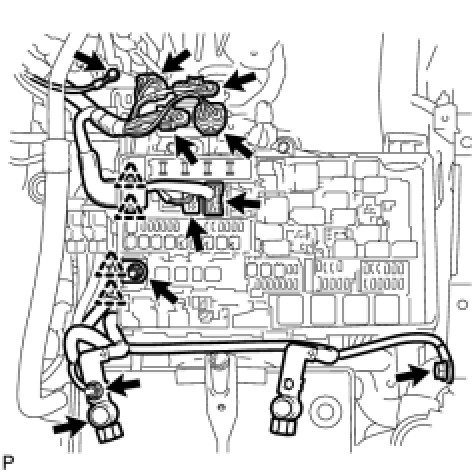 (b) Connect the 2 connectors and 2 clips to the engine room junction block.