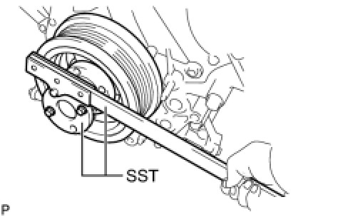 (a) Using SST, hold the crankshaft.
