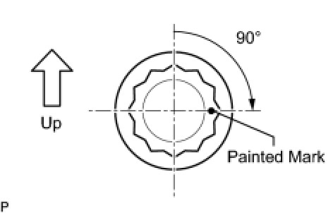 (e) Tighten the flywheel installation bolts 90° as shown in the illustration.