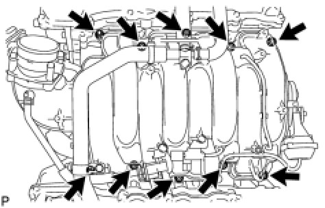 (b) Place the intake manifold on the cylinder head.