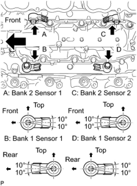 (a) Install the 4 sensors with the 4 bolts so that the sensors are angled as shown in the illustration.