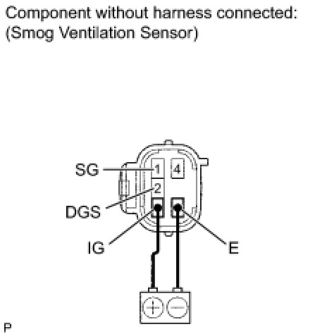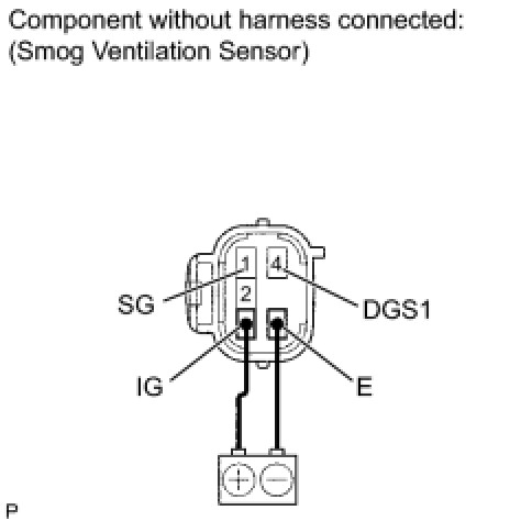 (2) Allow exhaust gas (NOx) to travel to the sensing portion of the smog ventilation sensor, and measure the resistance between terminals 1 (SG) and 4 (DGS1).