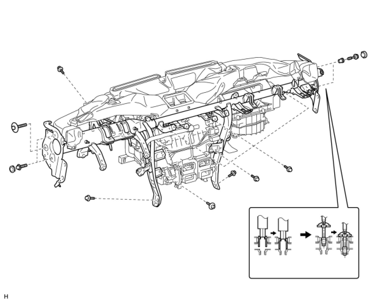 (1) Install the instrument panel reinforcement with the 7 bolts and screw.