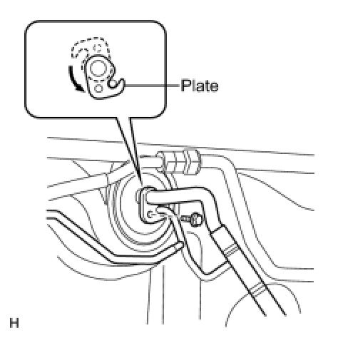 (e) Attach the plate as shown in the illustration and install the bolt.