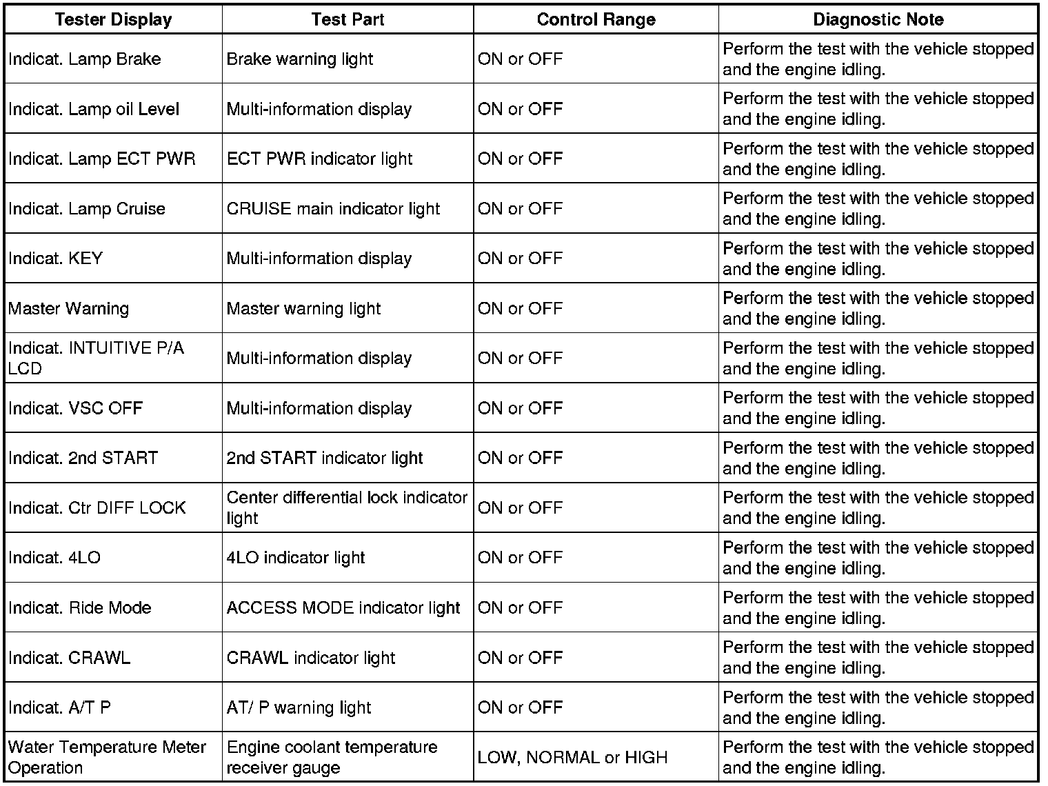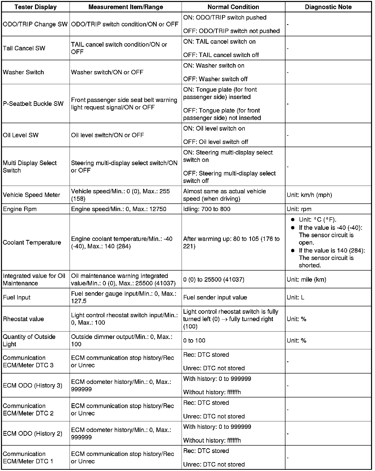 METER / GAUGE / DISPLAY: METER / GAUGE SYSTEM: DATA LIST / ACTIVE TEST