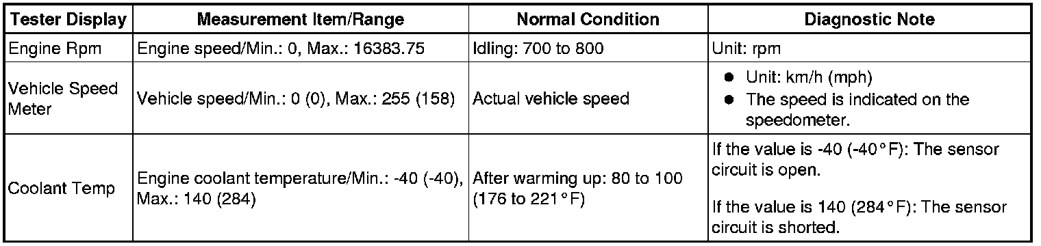Using the Techstream to read the Data List allows the values or states of switches, sensors, actuators and other items to be read without removing any parts. This non-intrusive inspection can be very useful because intermittent conditions or signals may be discovered before parts or wiring is disturbed. Reading the Data List information early in troubleshooting is one way to save diagnostic time.