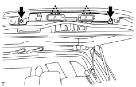 (b) Using a T30 "TORX" socket wrench, attach the 2 clips and install the garnish with the 2 screws.