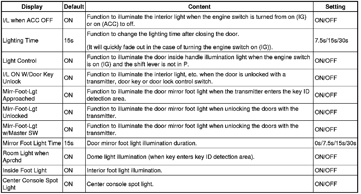 Mode 1: When door is opened, map light of opened door illuminates, or personal light illuminates
