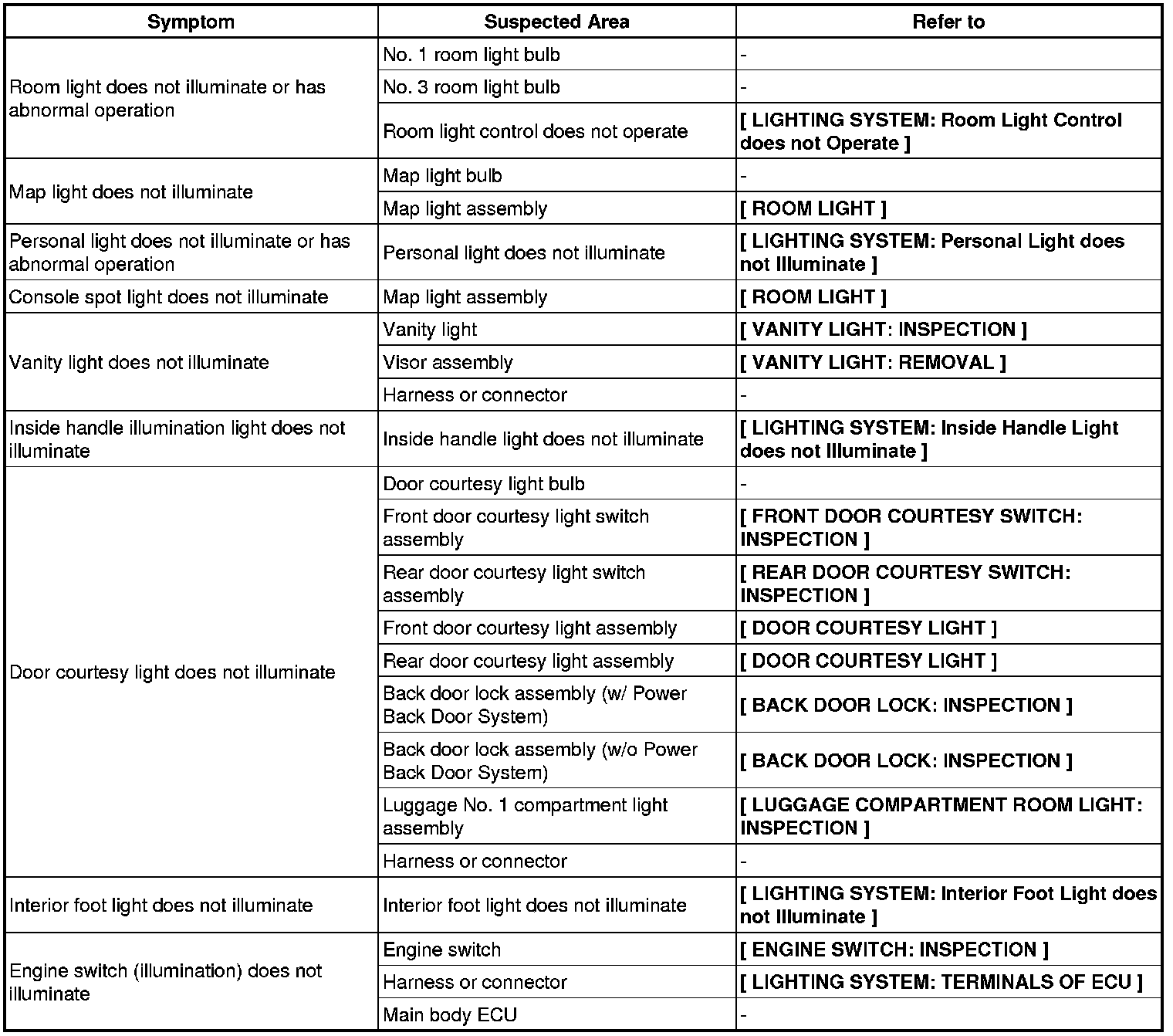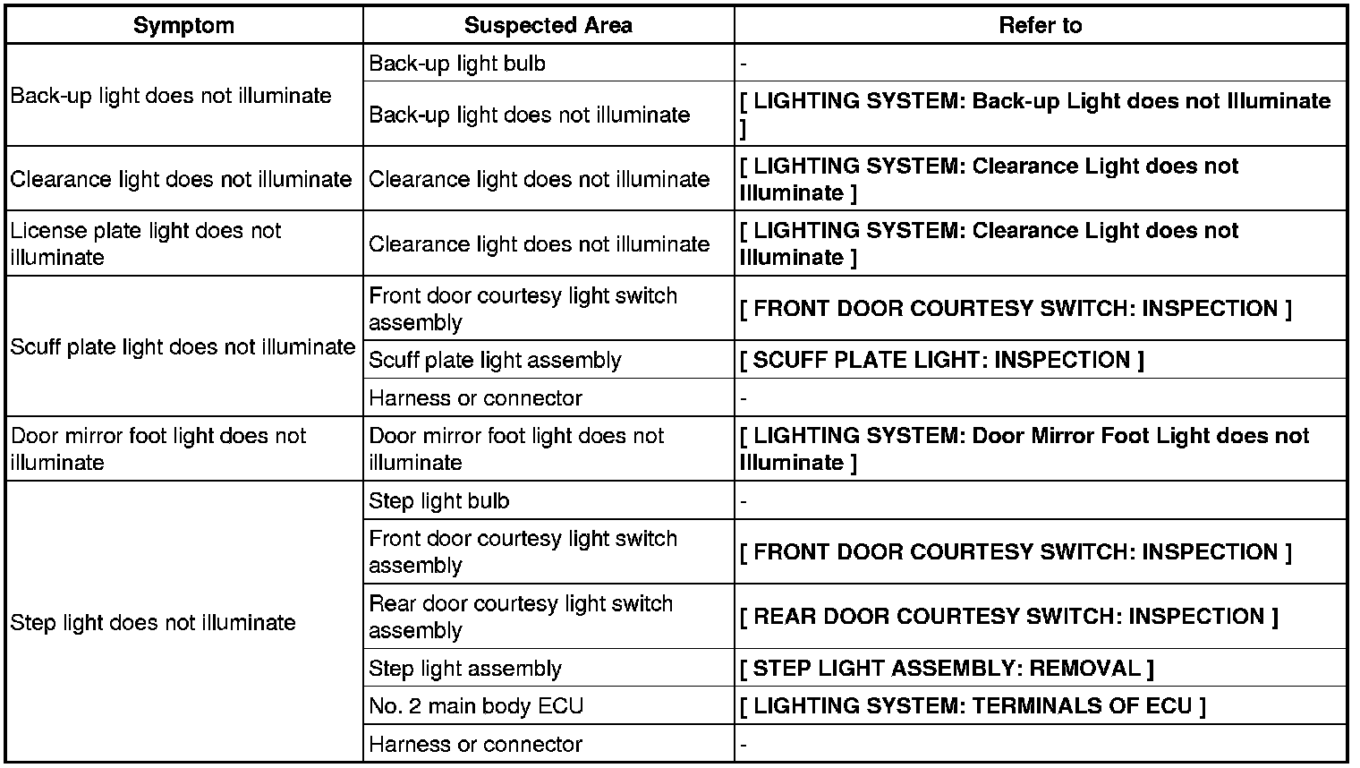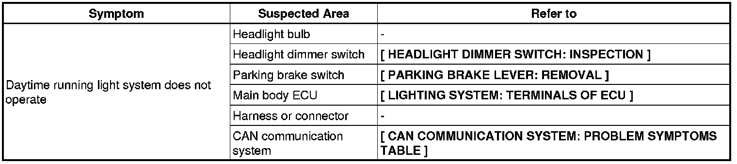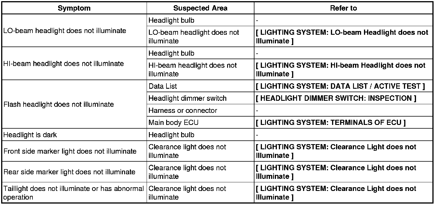LIGHTING (EXT): LIGHTING SYSTEM: PROBLEM SYMPTOMS TABLE
