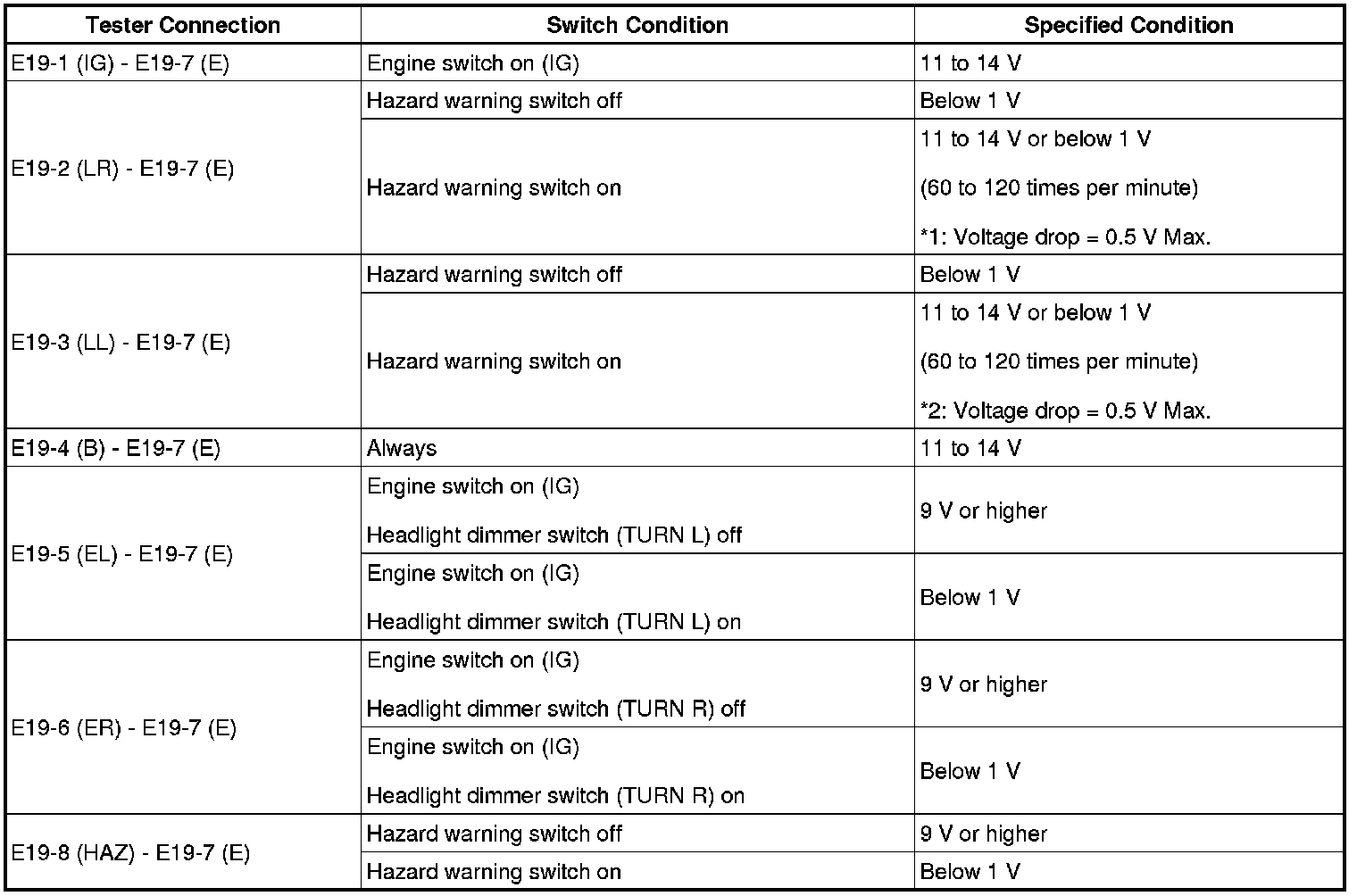 *1: E19-4 (B) - E19-2 (LR) Voltage drop = 0.5 V Max.