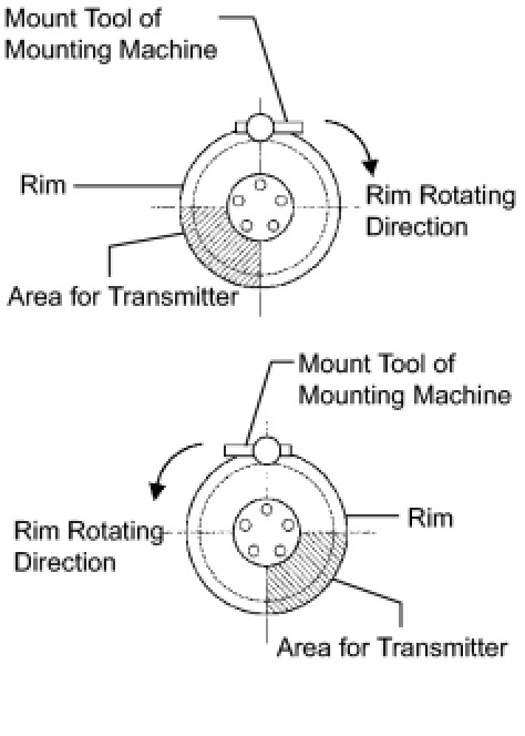 - If the tire pressure warning valve and transmitter is installed in the reverse direction, it may be damaged or fail to transmit signals when running at high speeds.