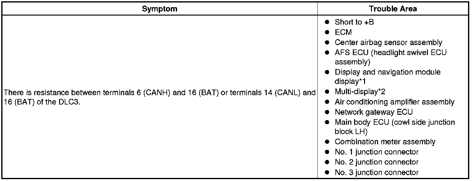 14. CHECK FOR SHORT TO B+ IN CAN BUS WIRE (NO. 2 JUNCTION CONNECTOR - DISPLAY AND NAVIGATION MODULE DISPLAY OR MULTI-DISPLAY)