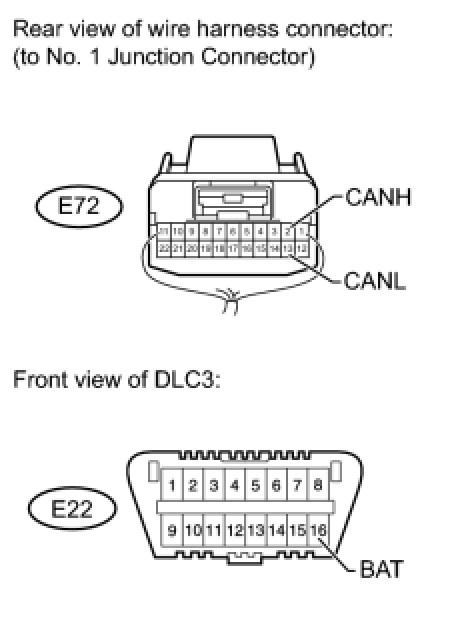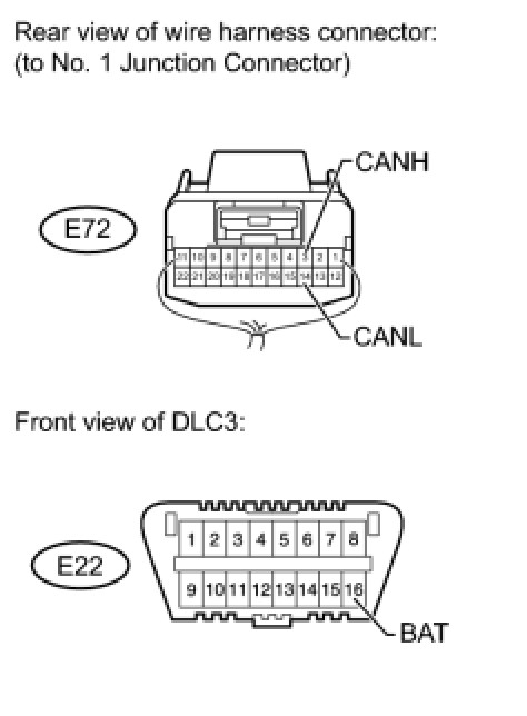 4. CHECK FOR SHORT TO B+ IN CAN BUS WIRE (NO. 1 JUNCTION CONNECTOR SIDE)