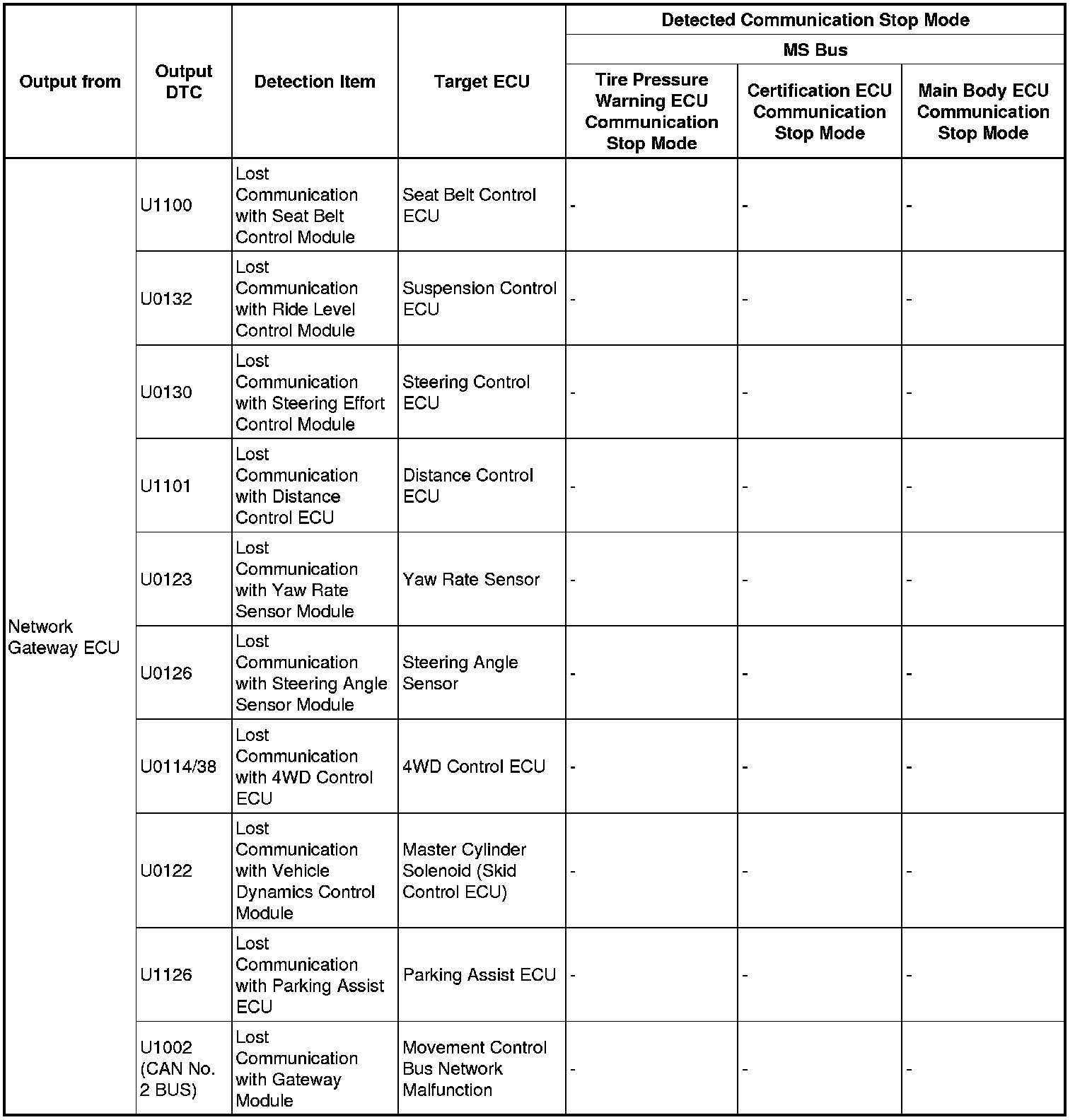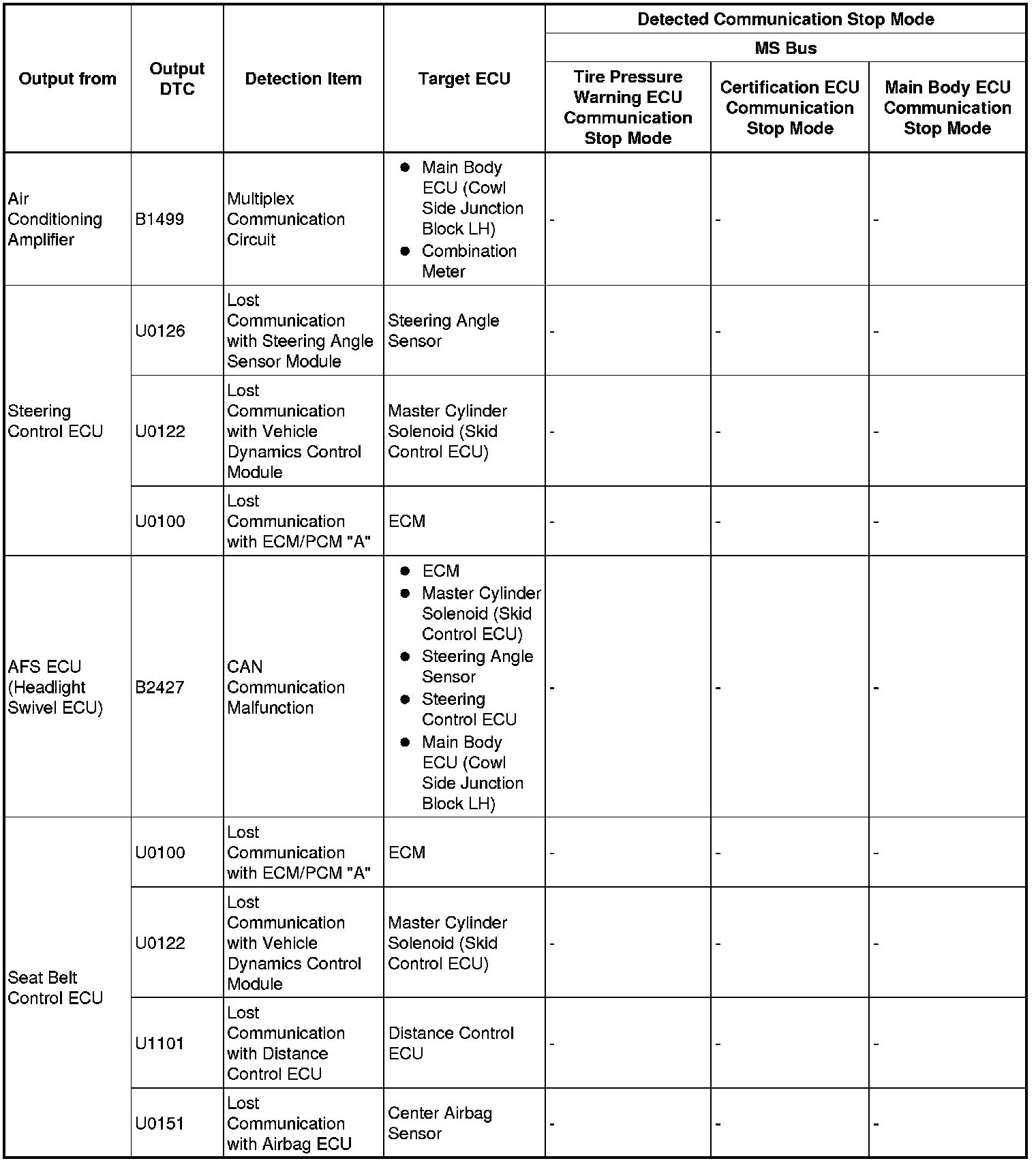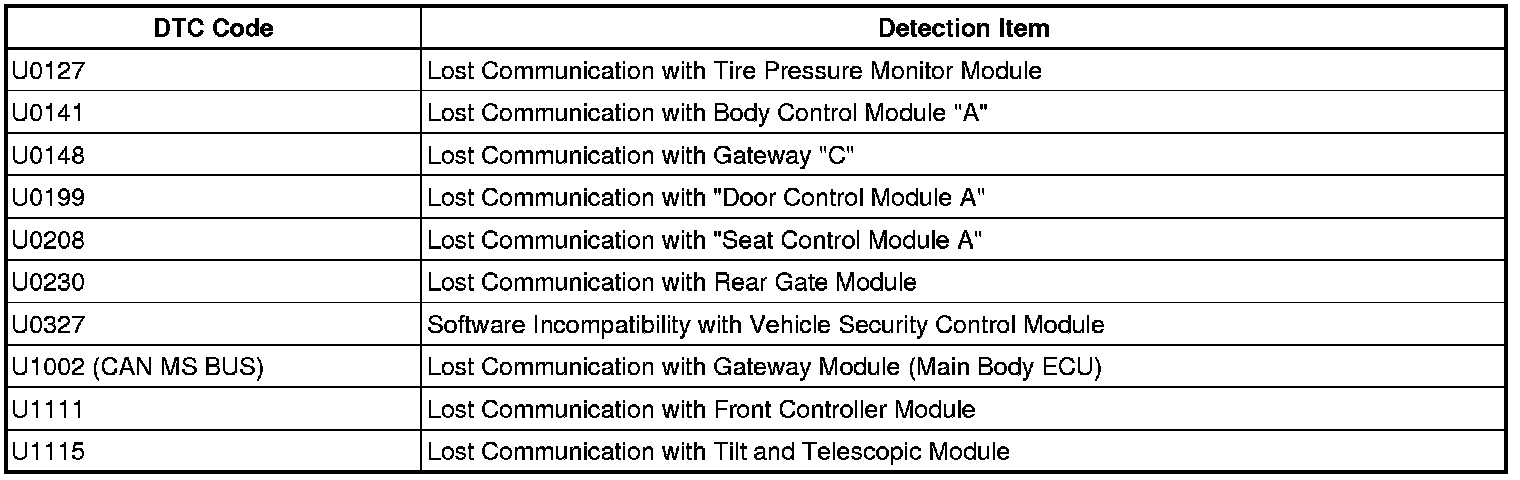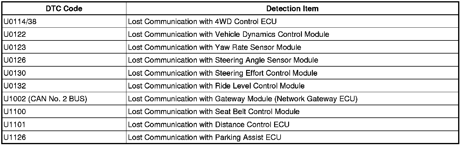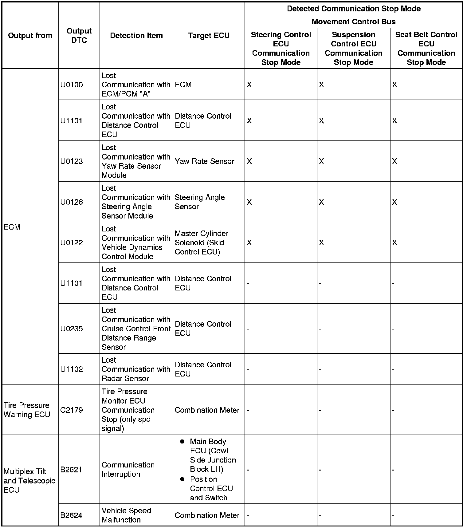 3. DTC TABLE BY ECU