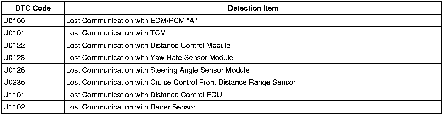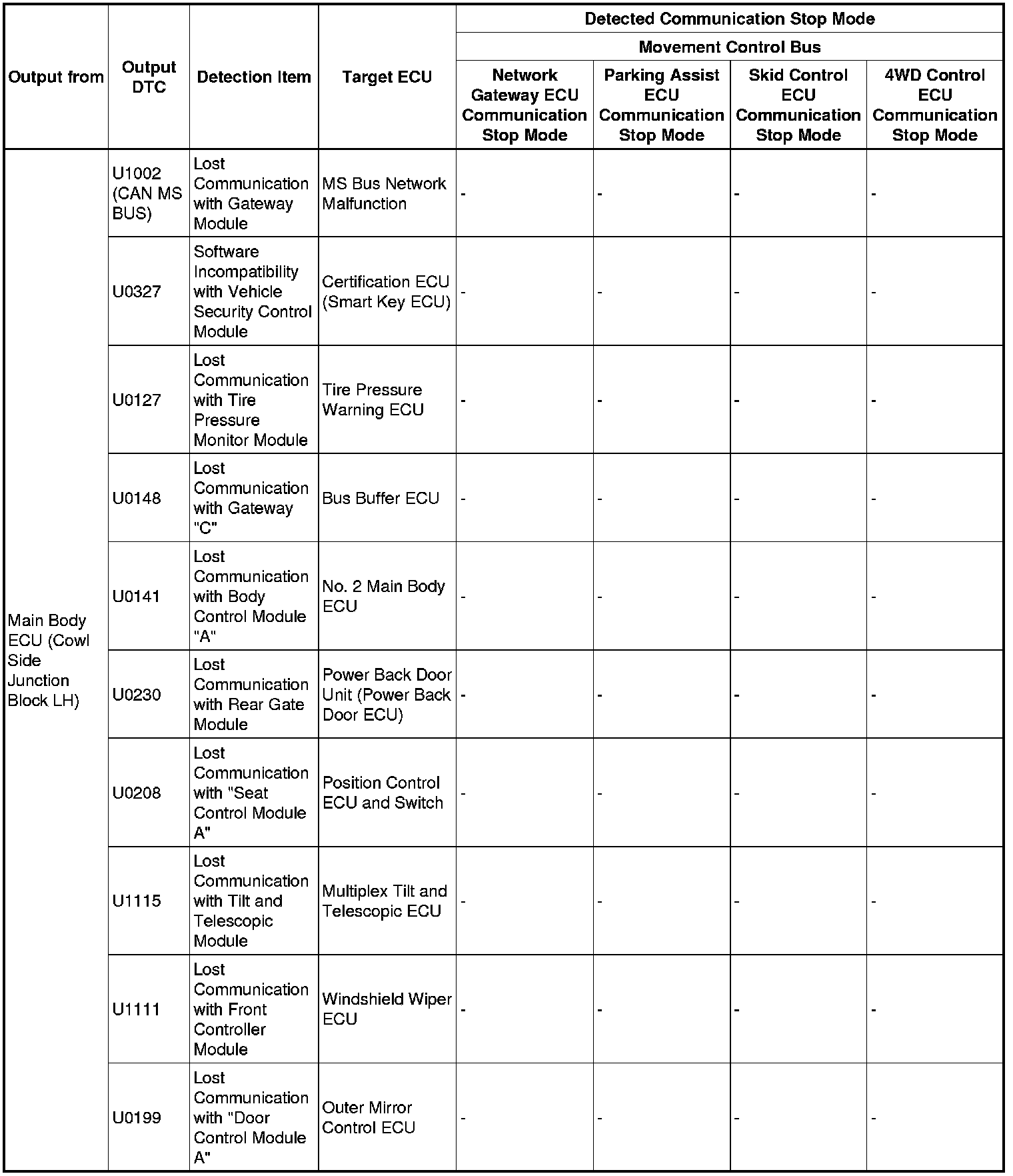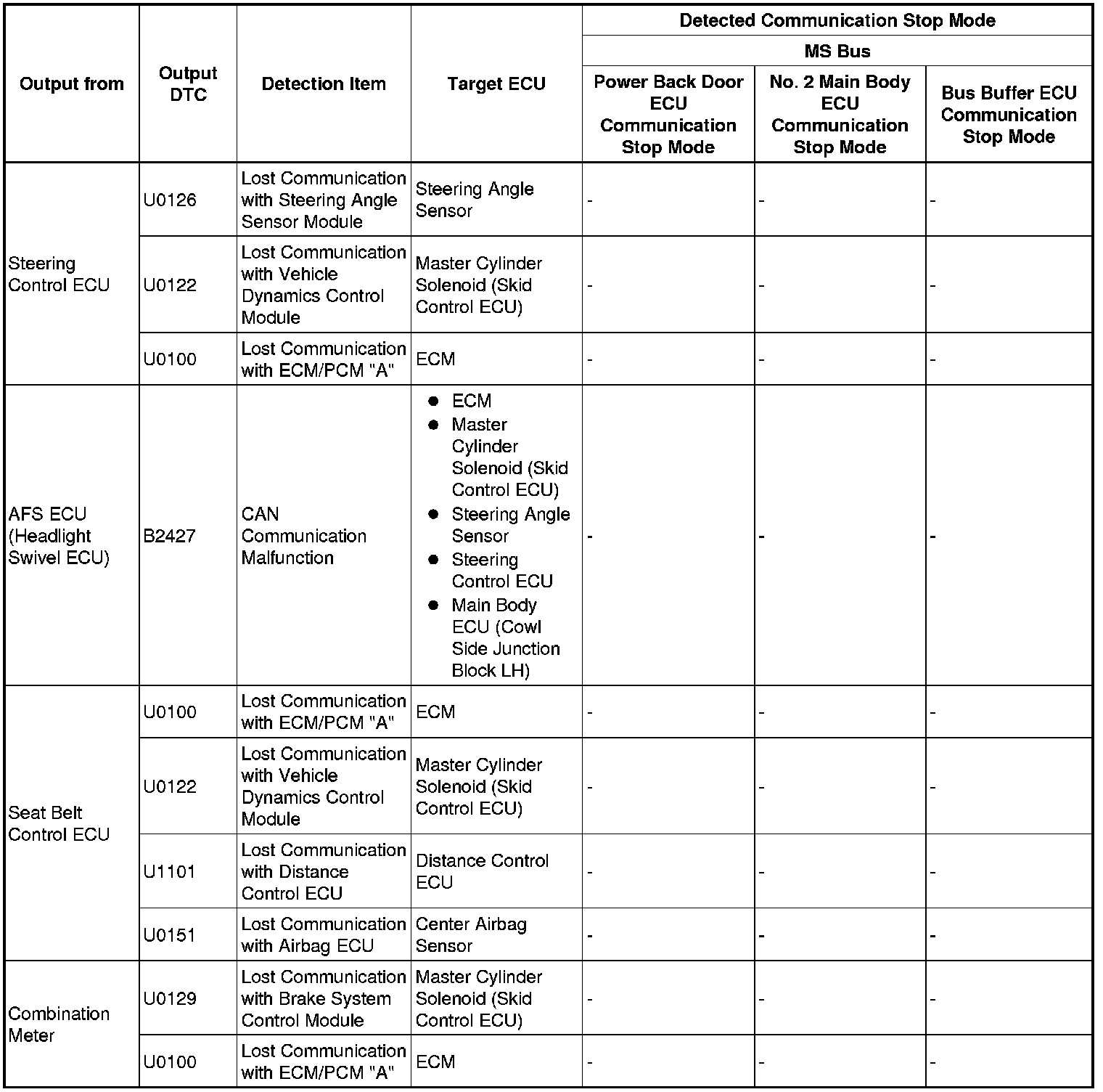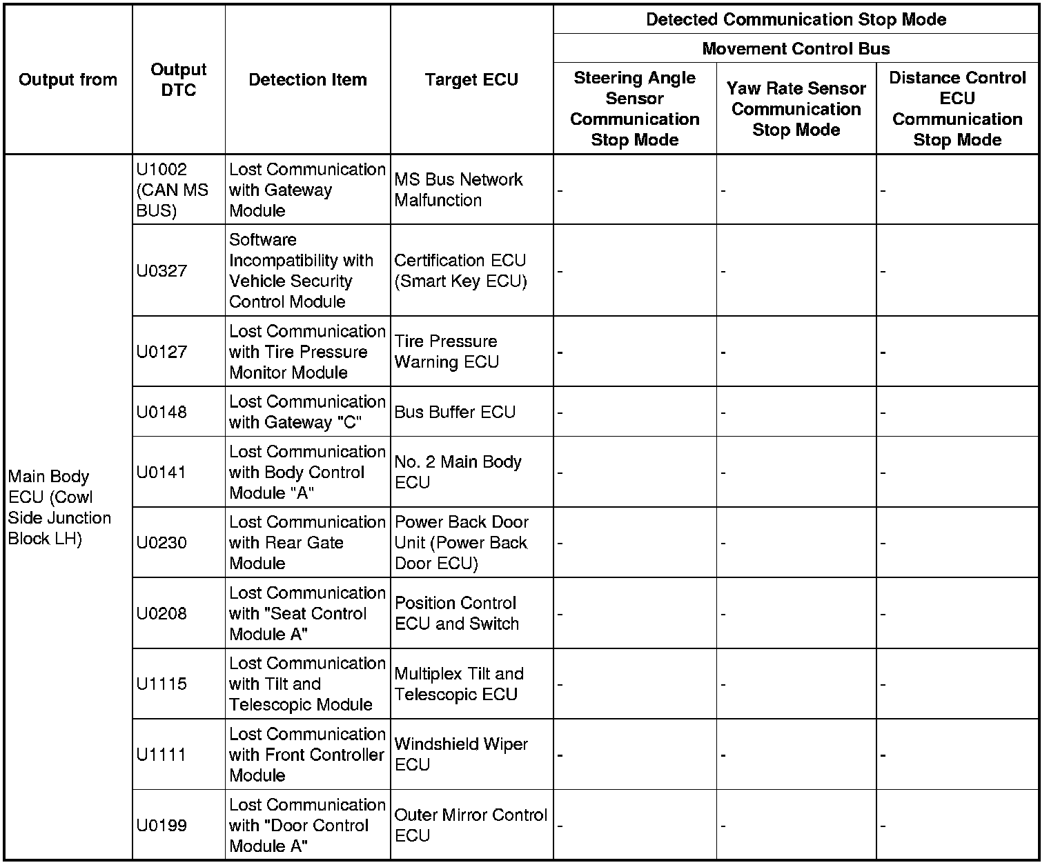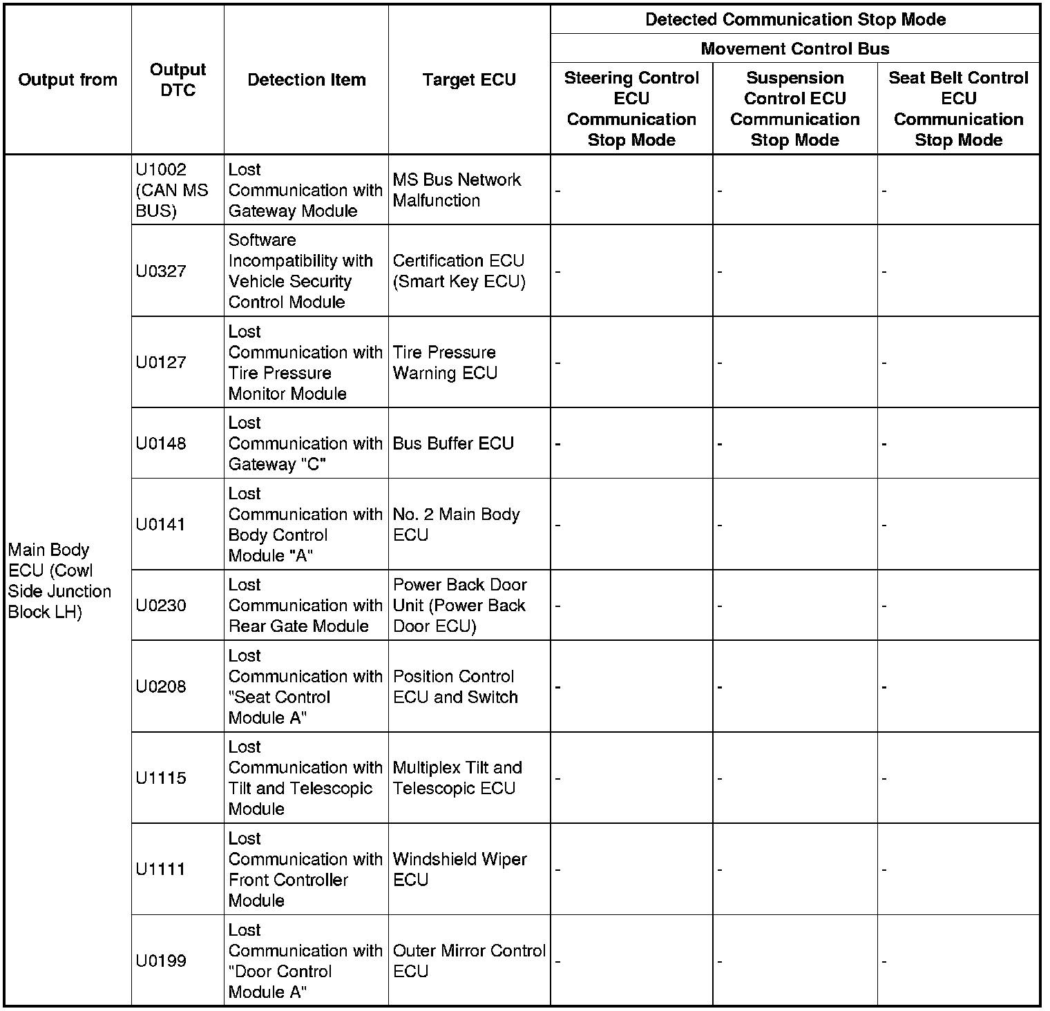 3. DTC TABLE BY ECU