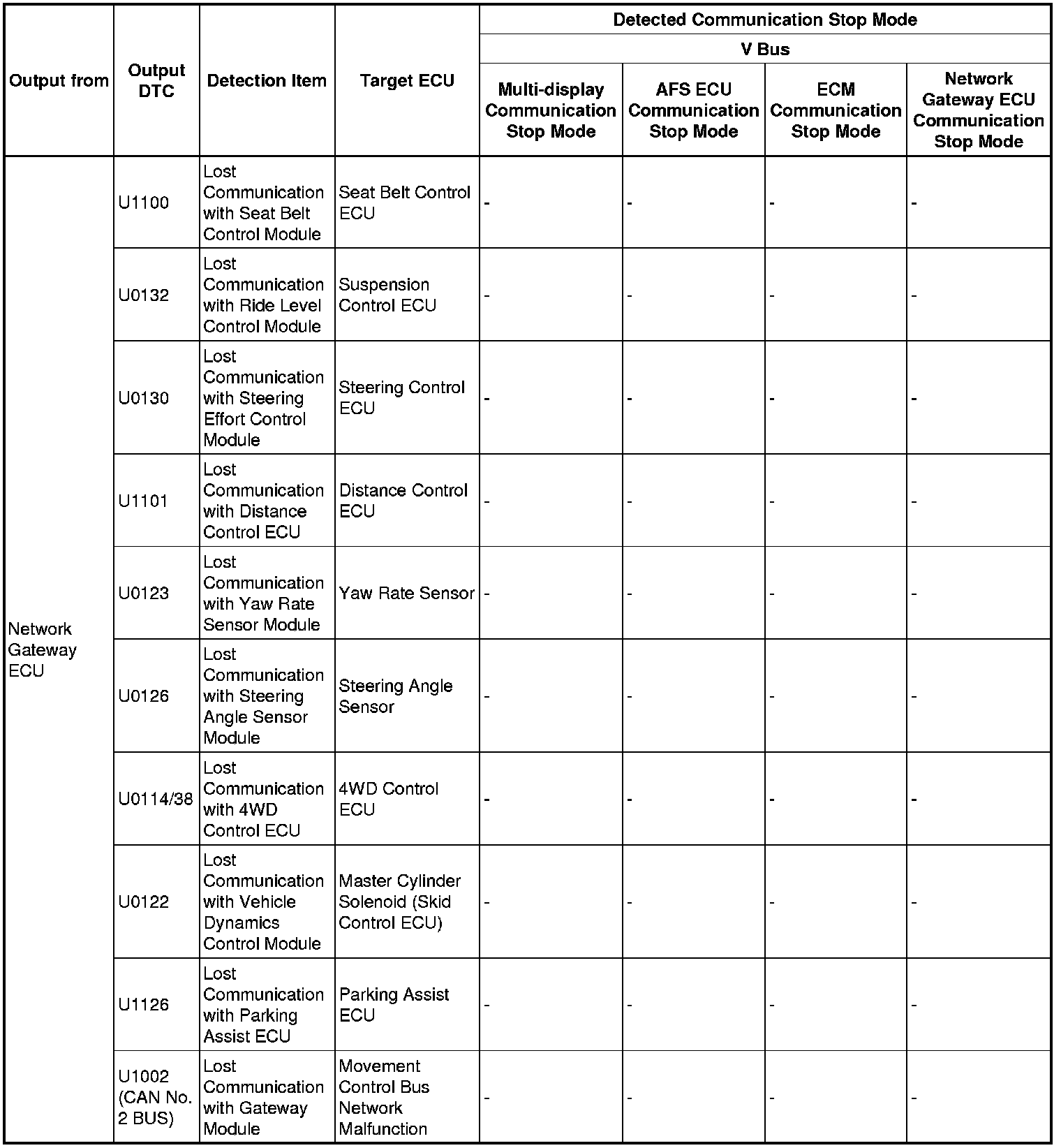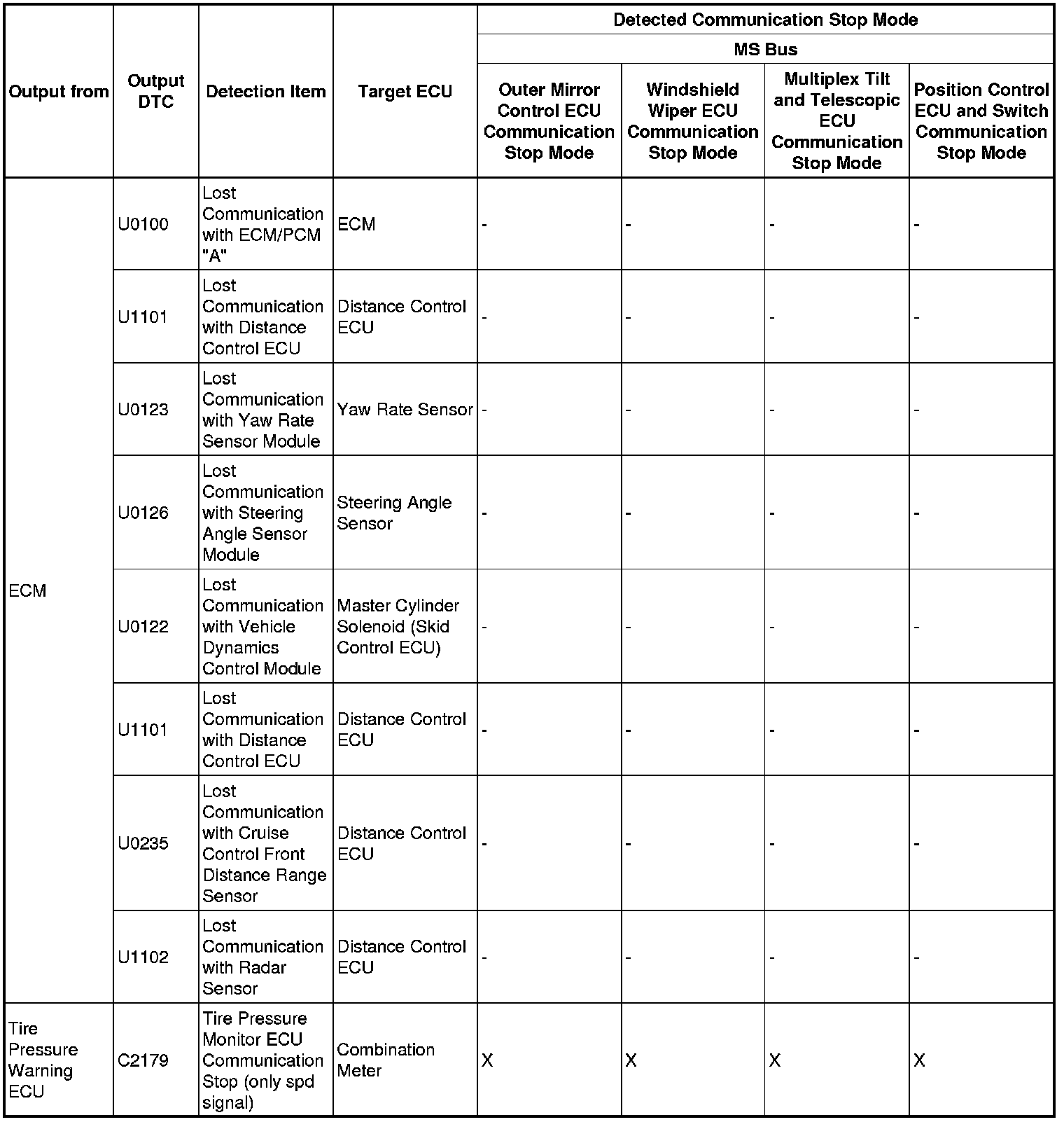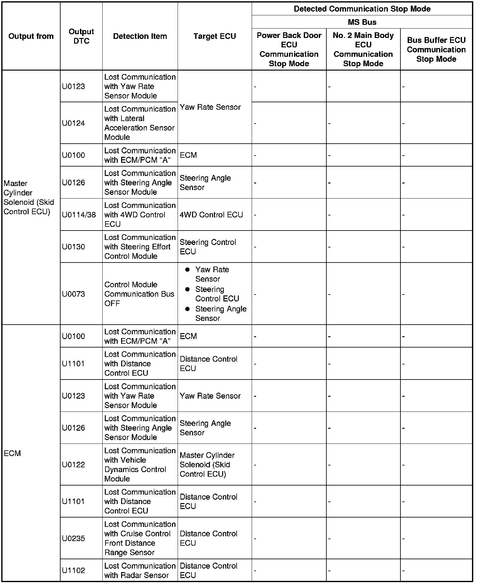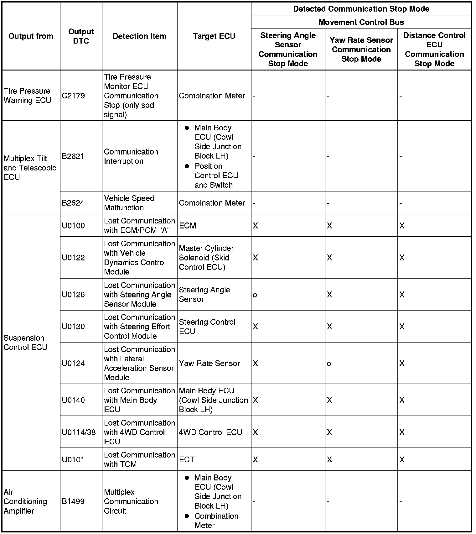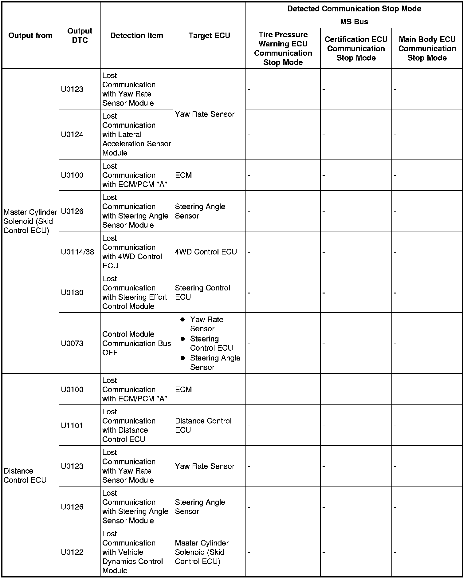 3. DTC TABLE BY ECU