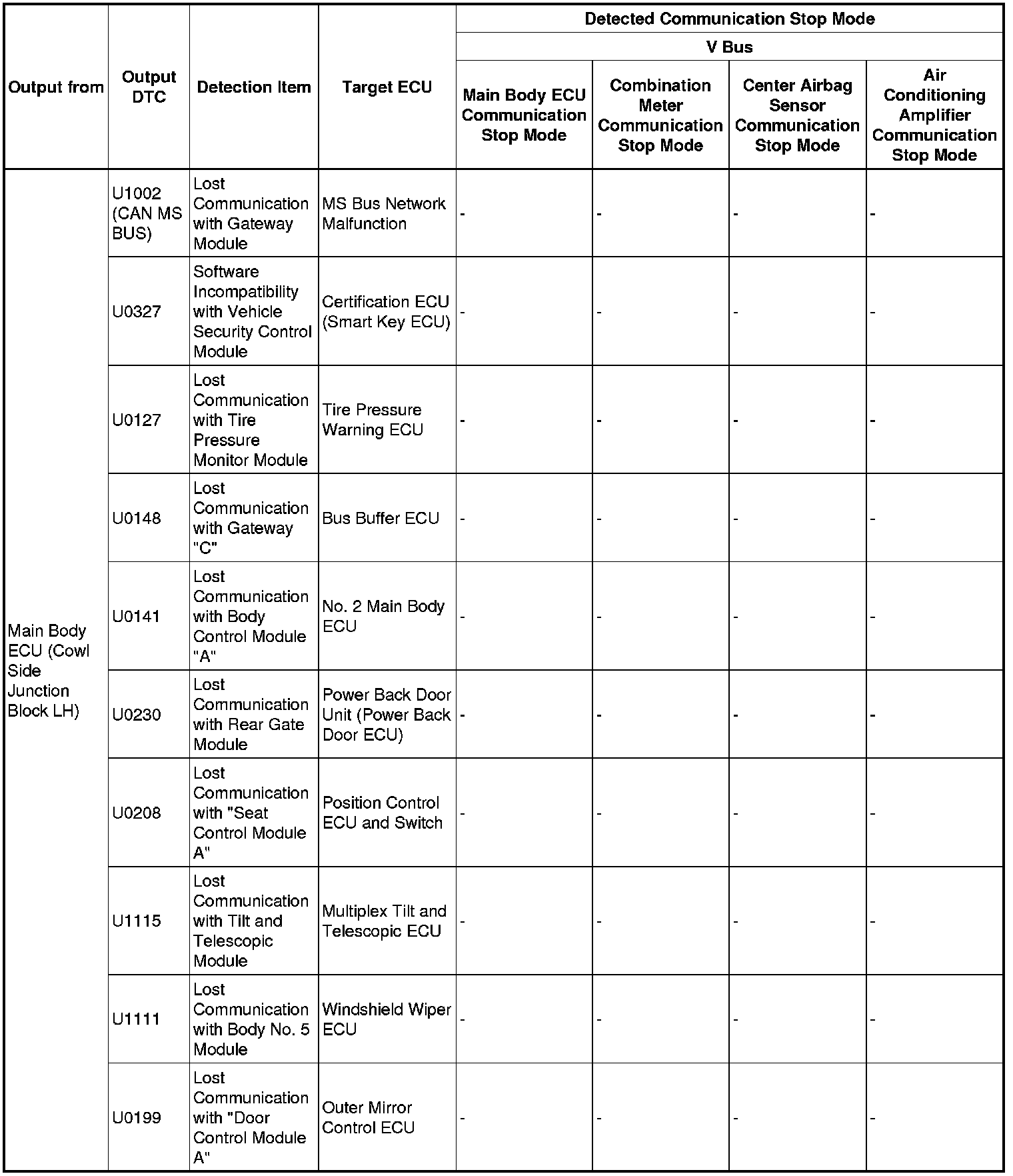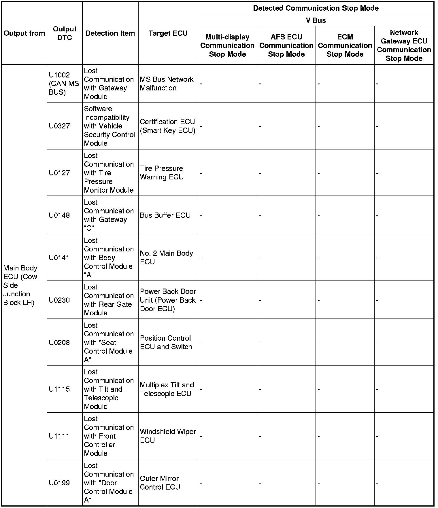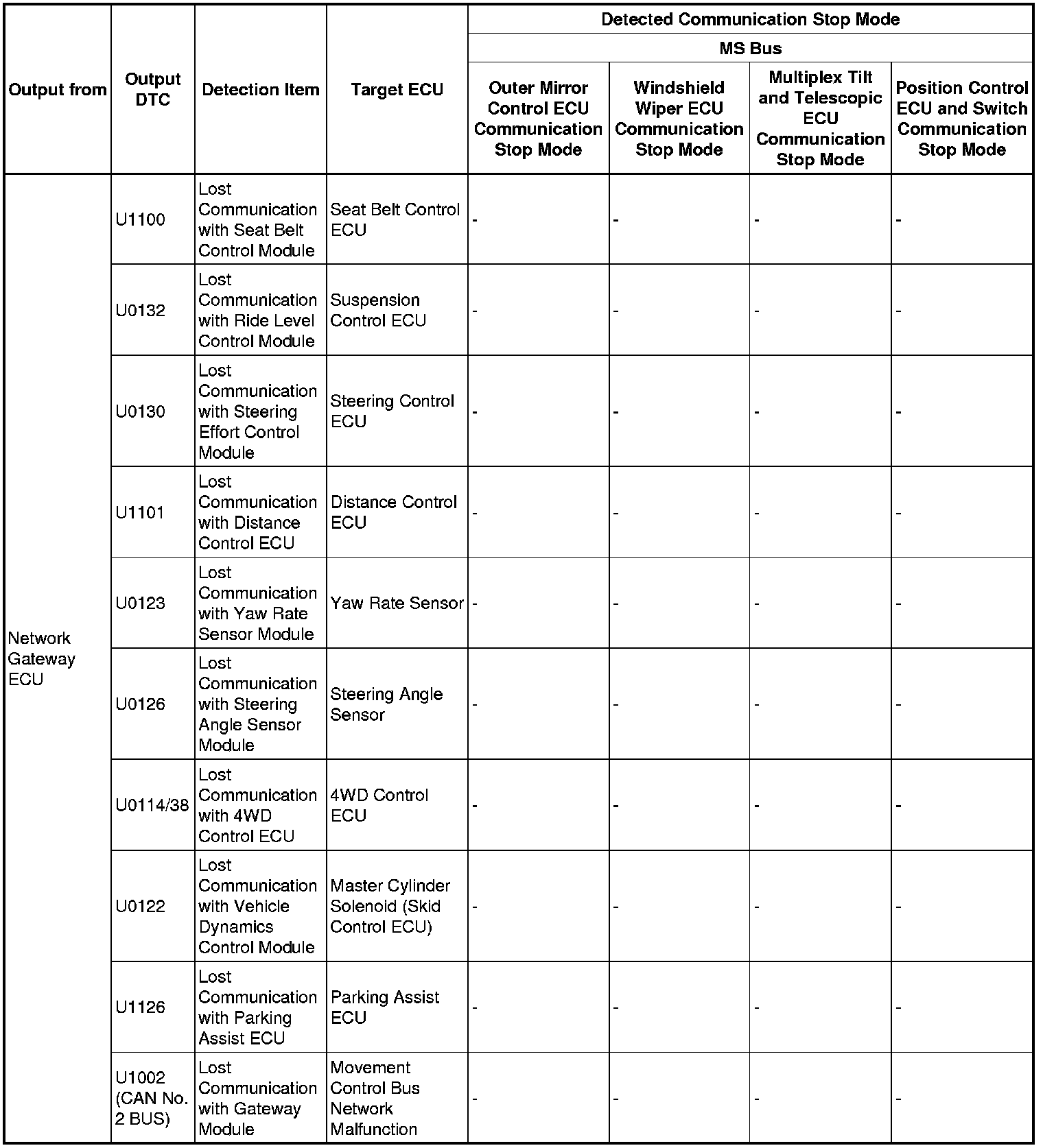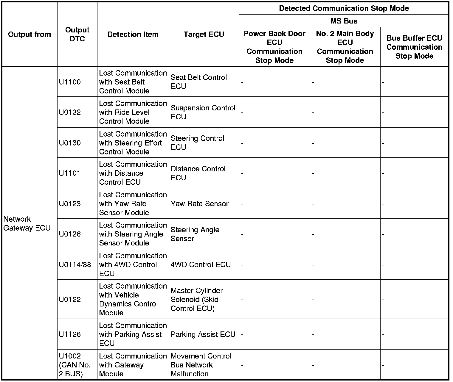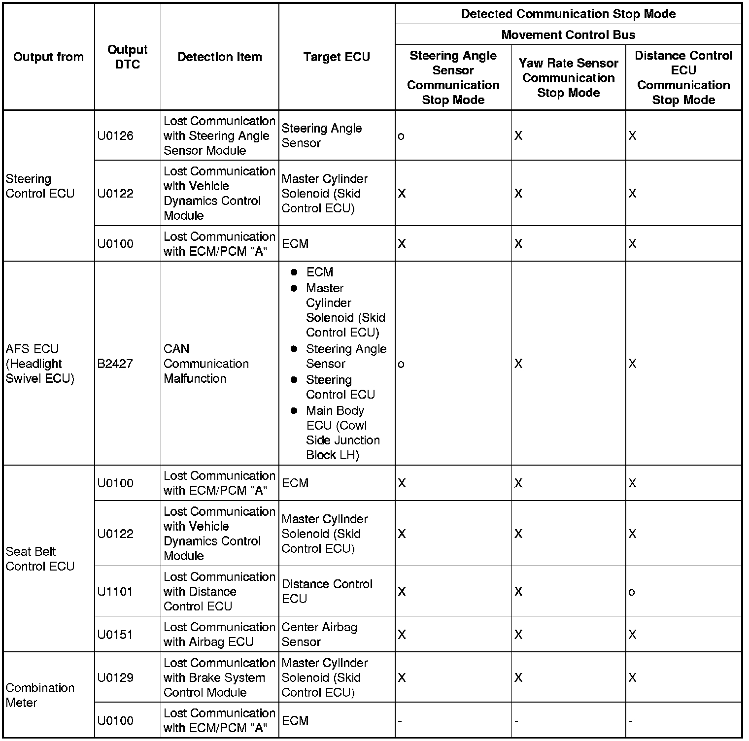 3. DTC TABLE BY ECU