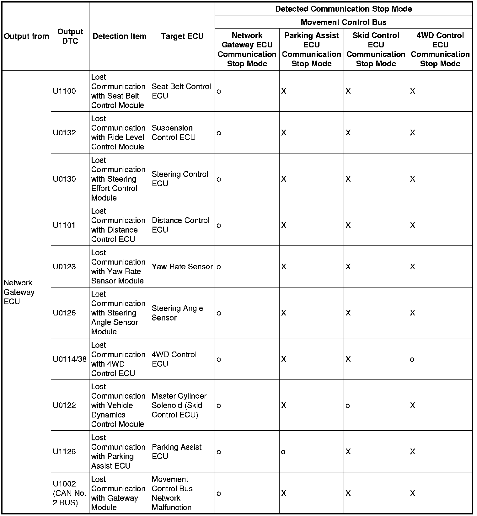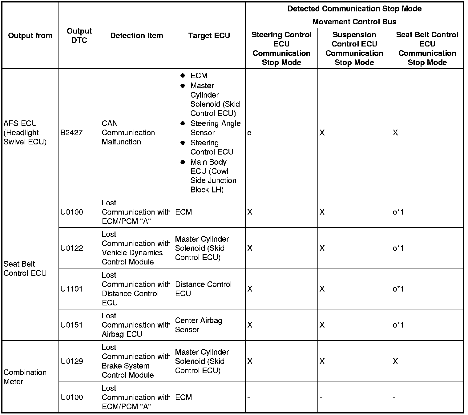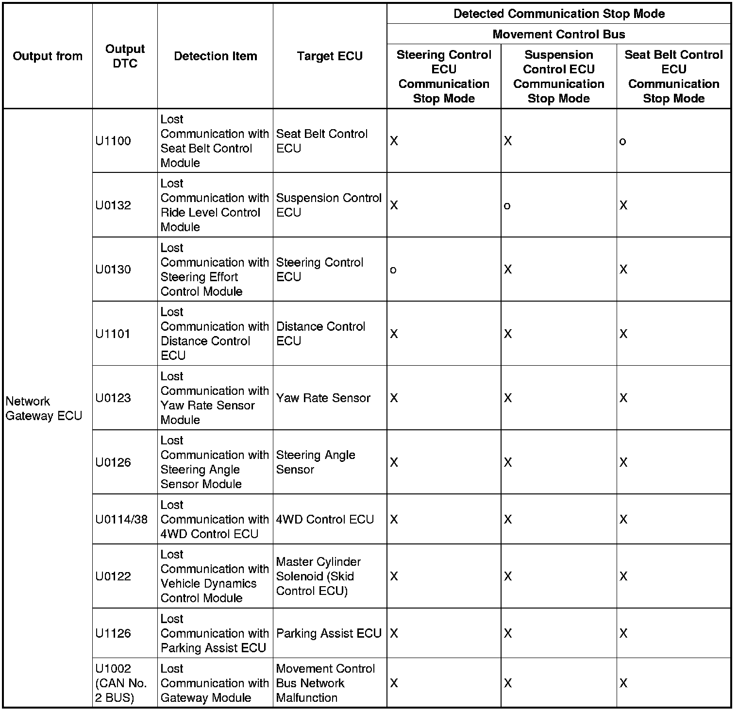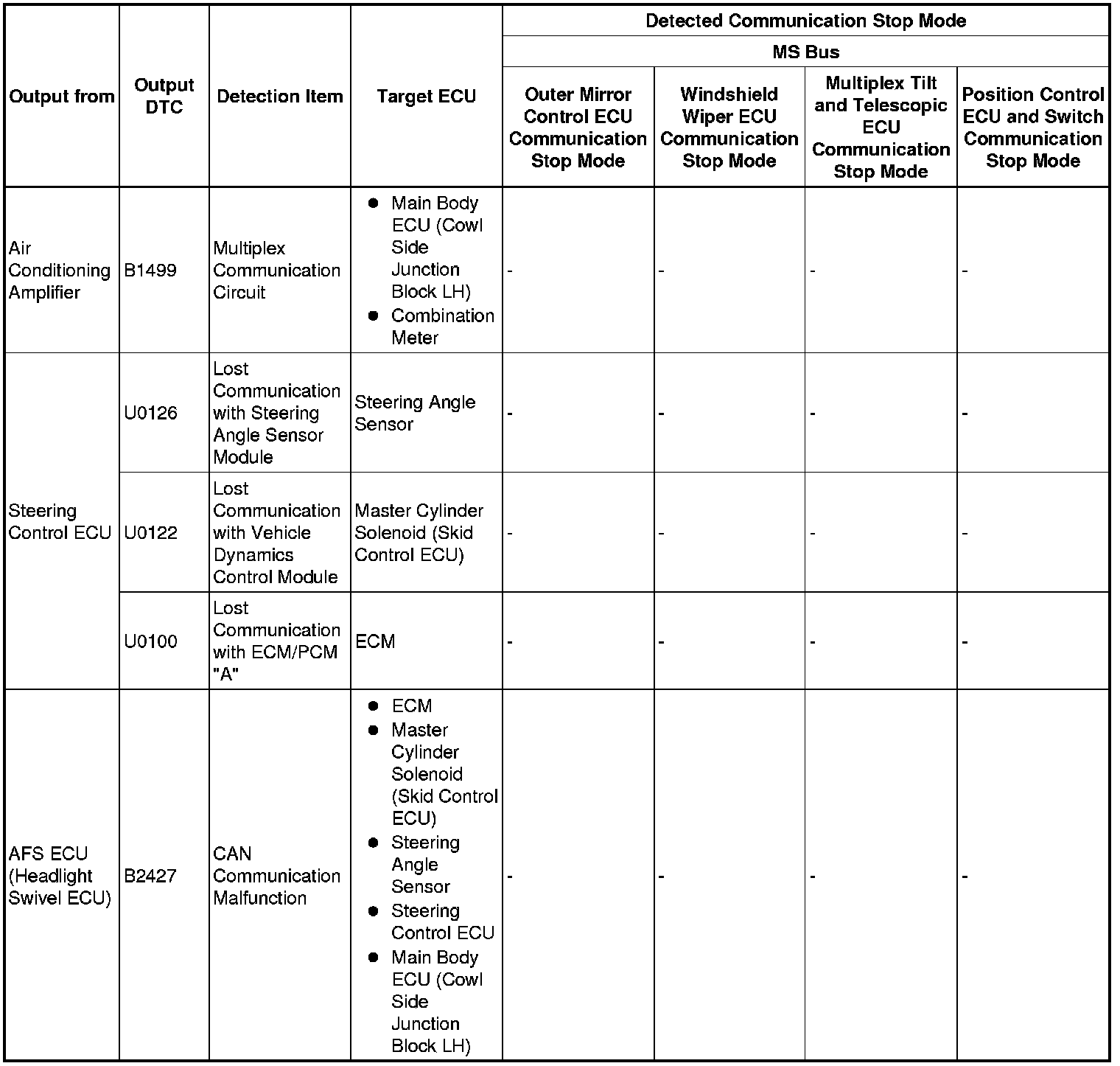 3. DTC TABLE BY ECU