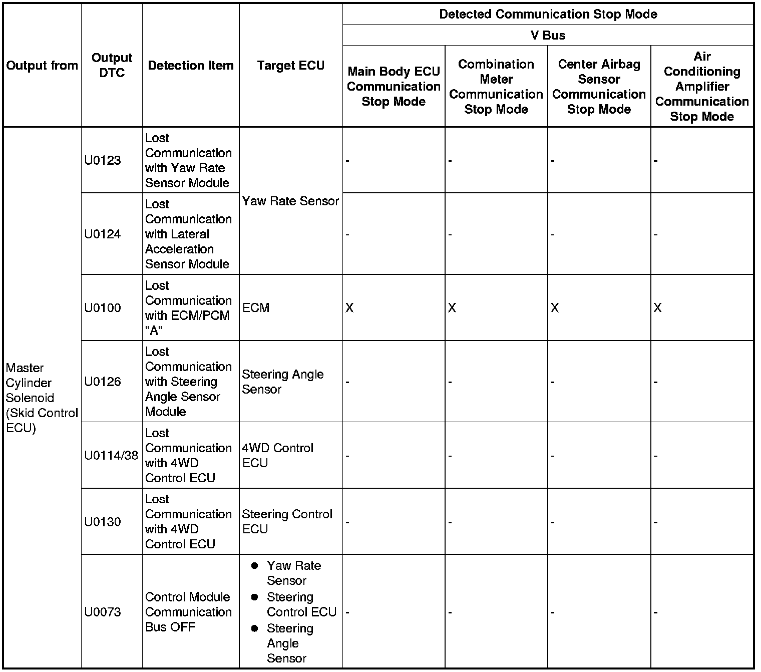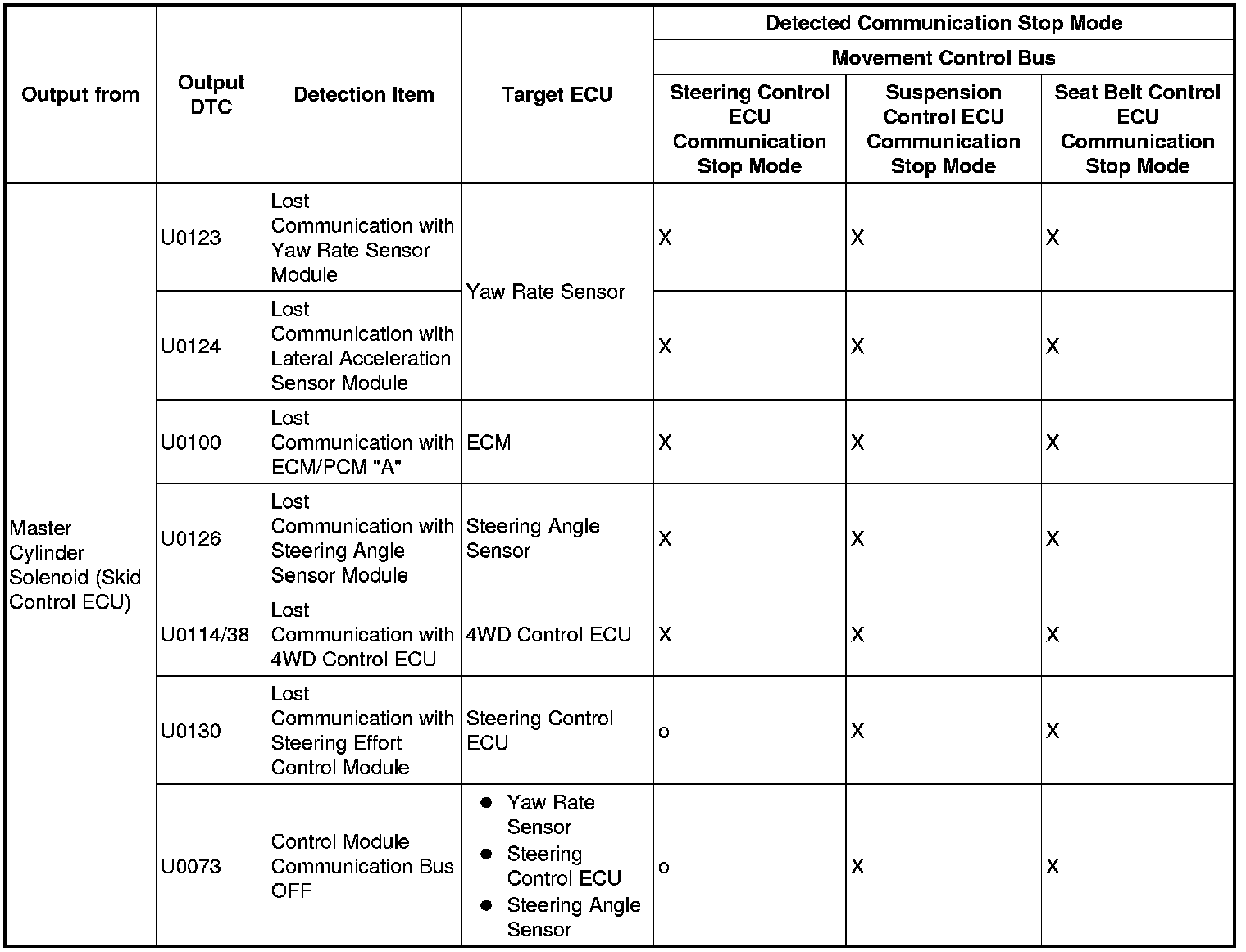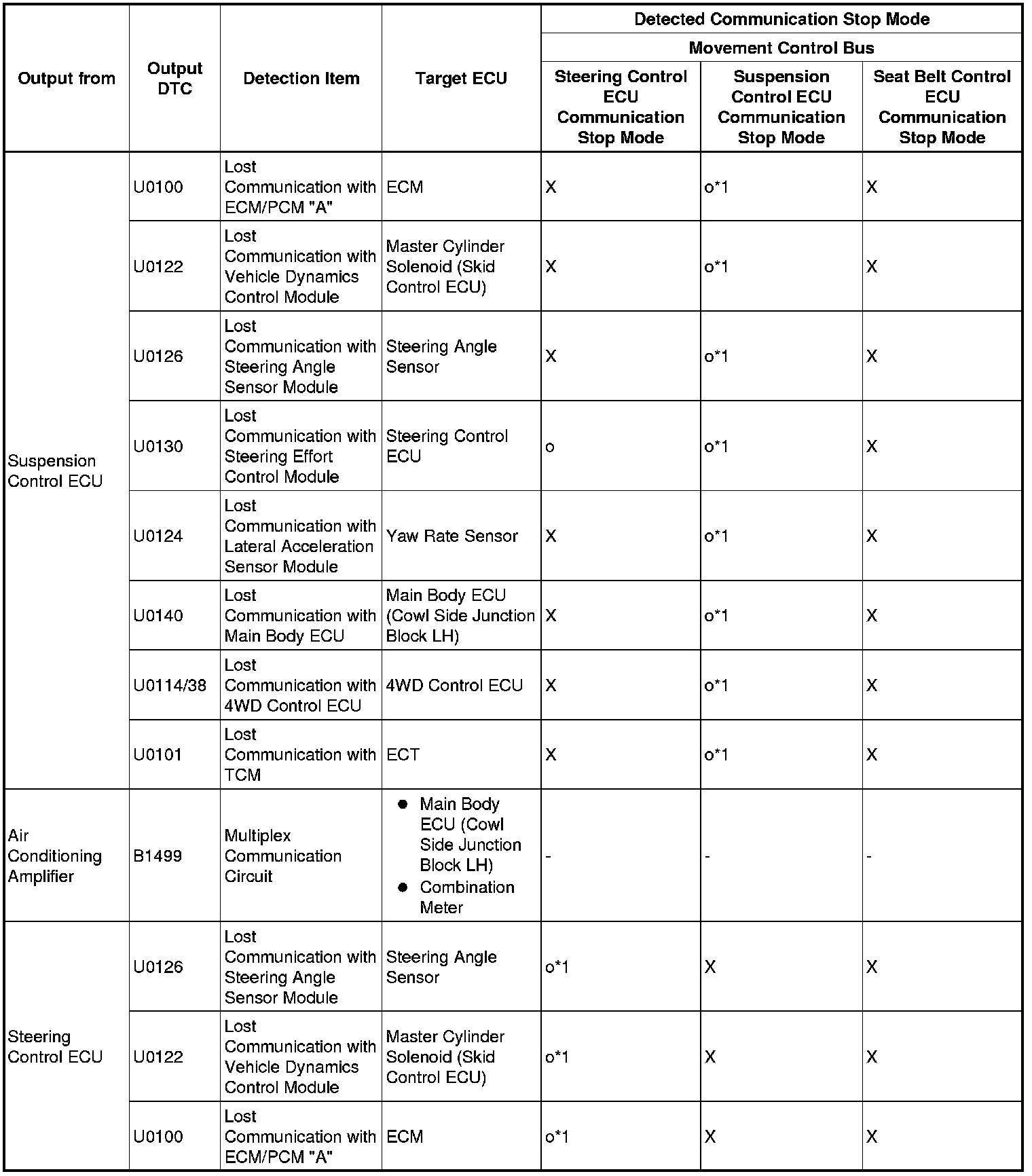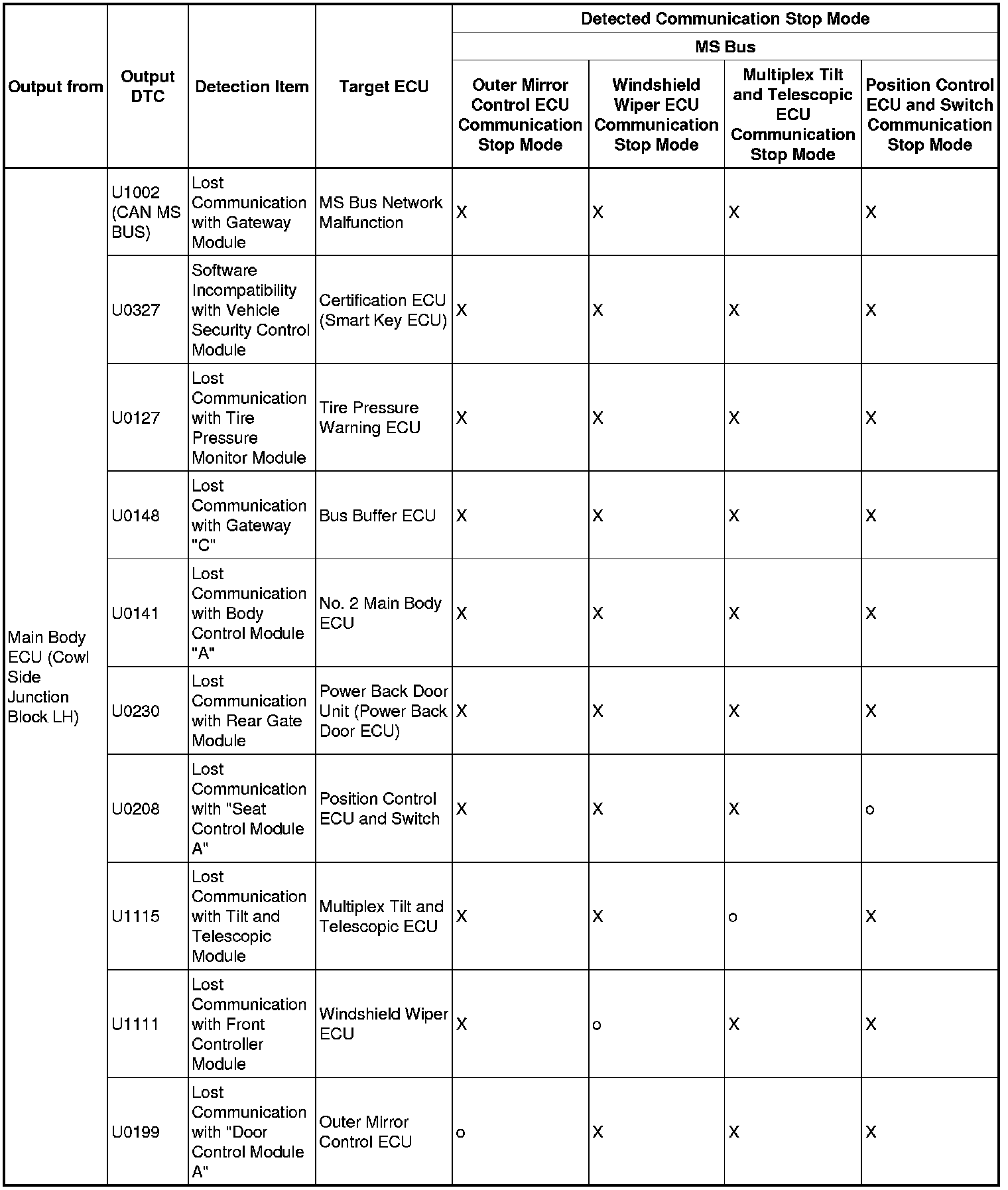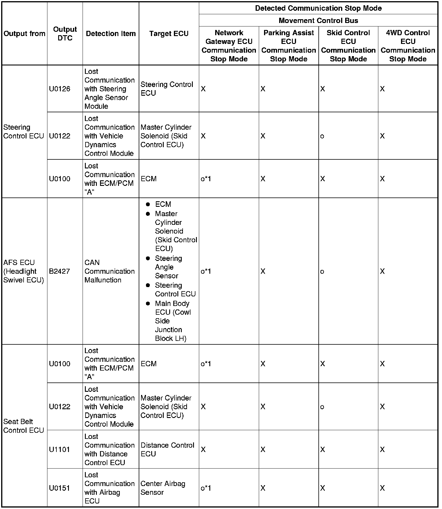 3. DTC TABLE BY ECU