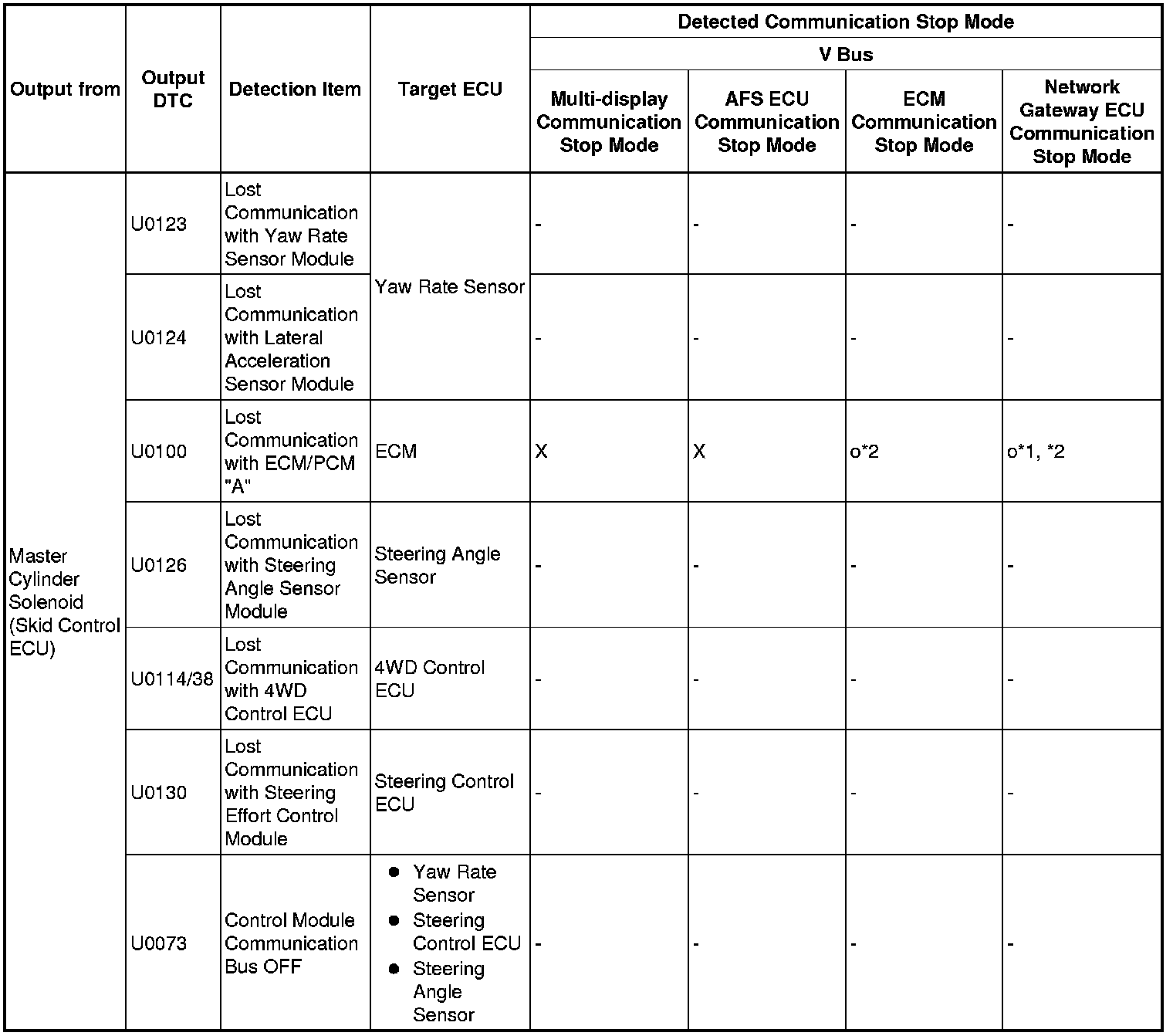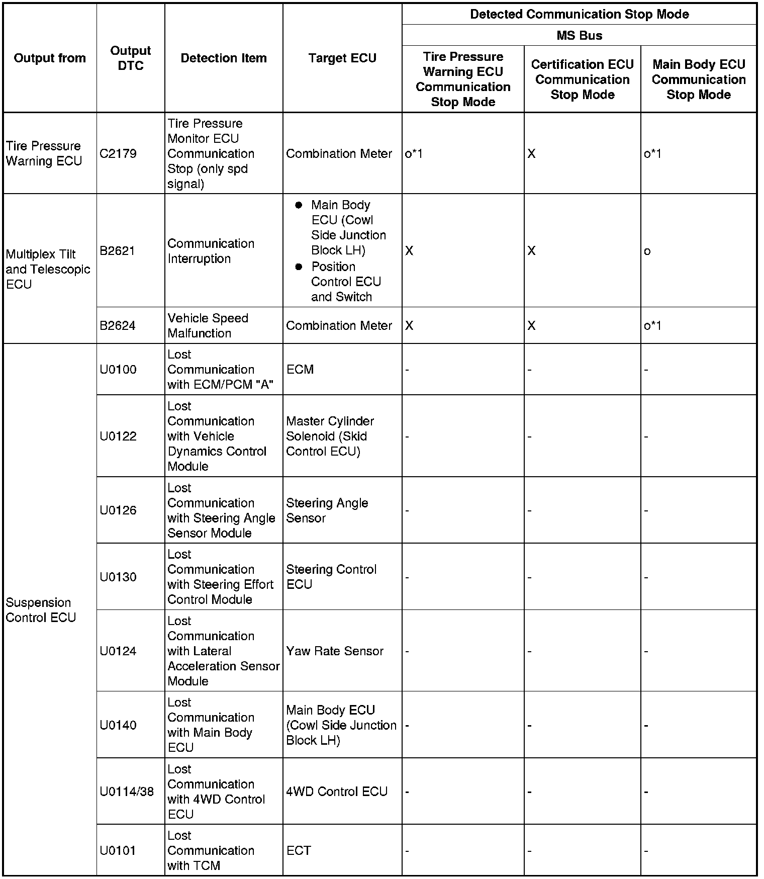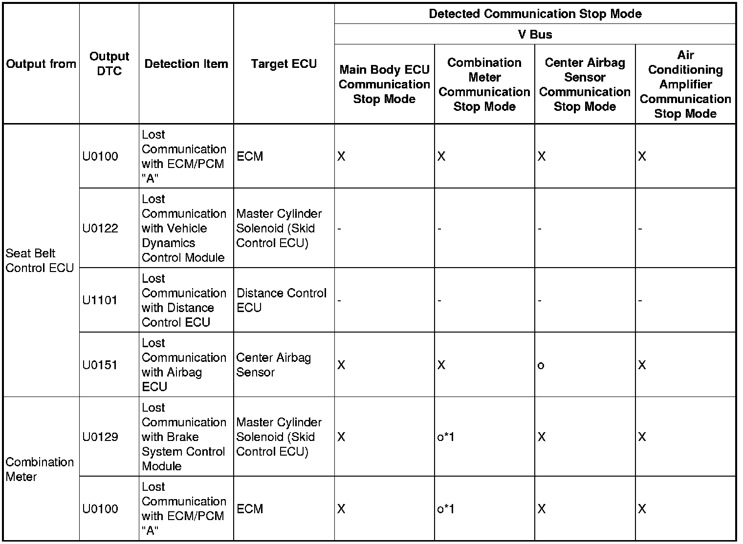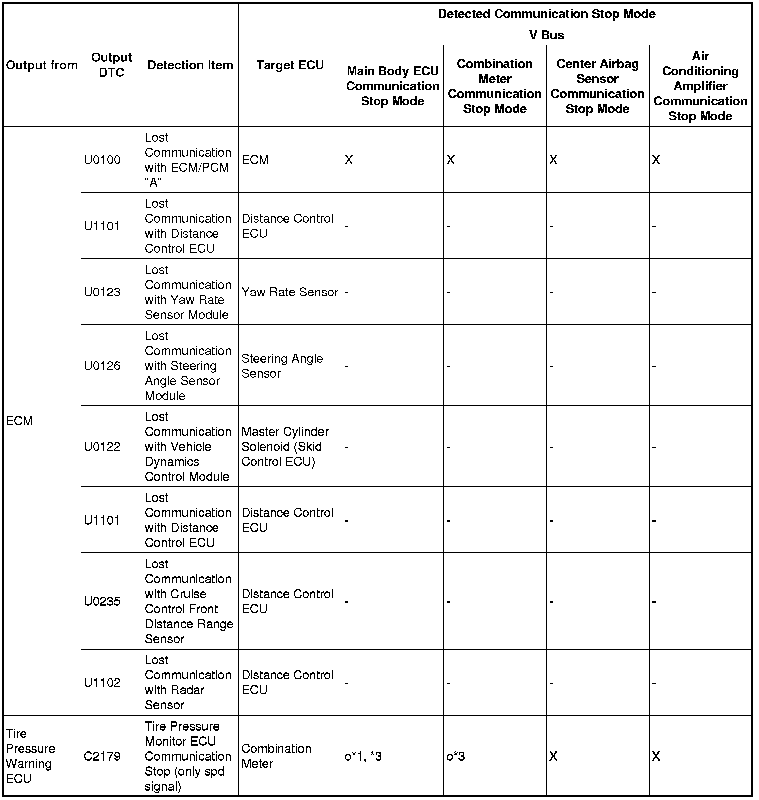 *3: This DTC is not stored when only the spd signal is lost. When any of DTCs C2121 to C2125 is stored and the spd signal is lost, this DTC is stored.
