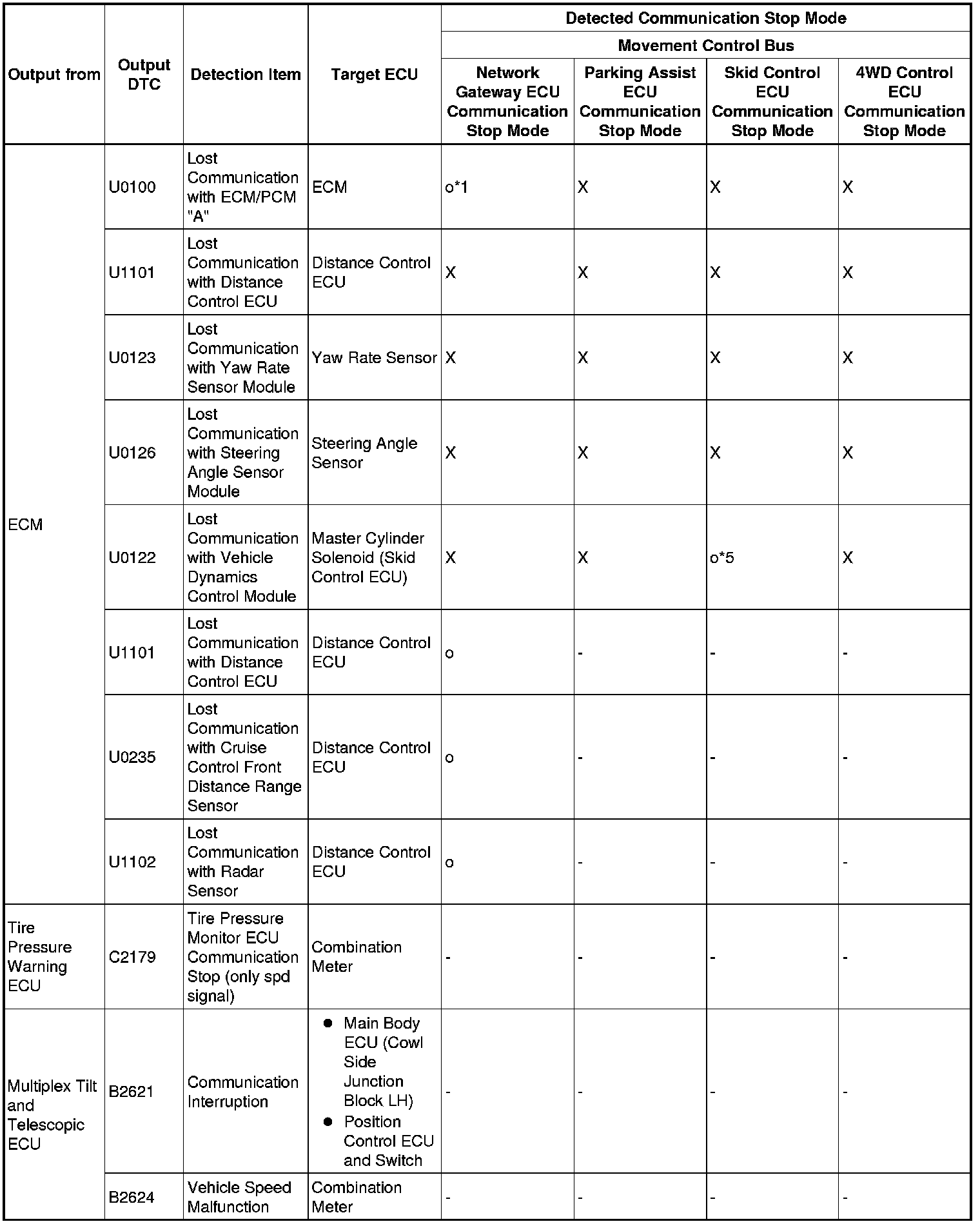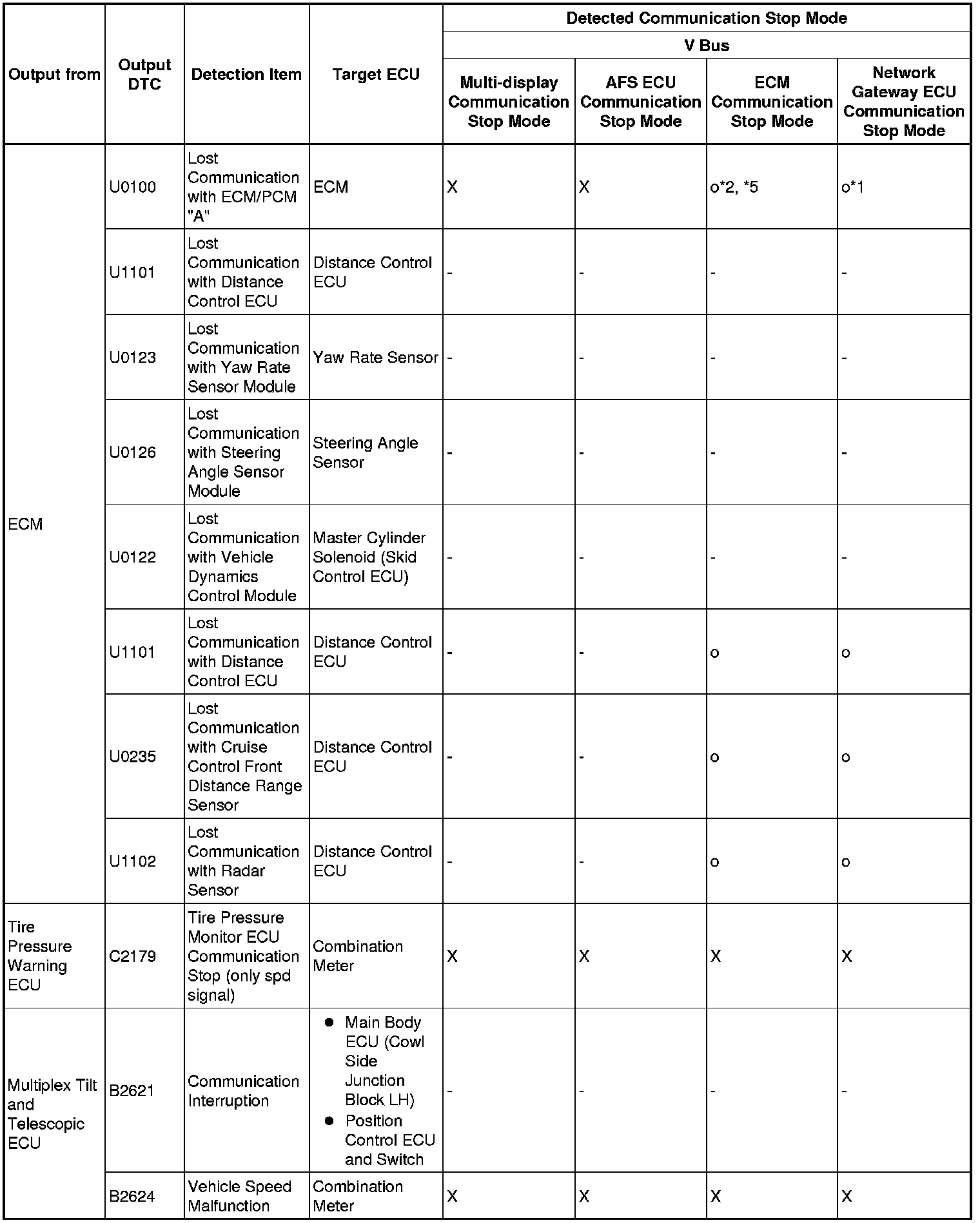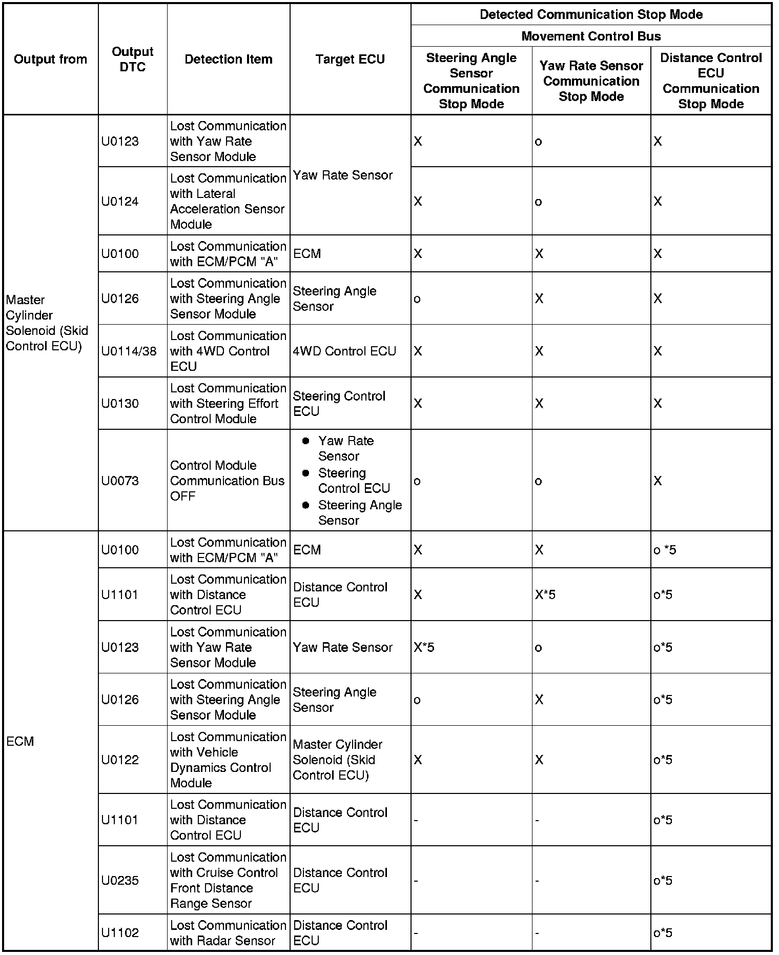 *5: The ECM receives diagnosis data from the distance control ECU and stores a DTC.