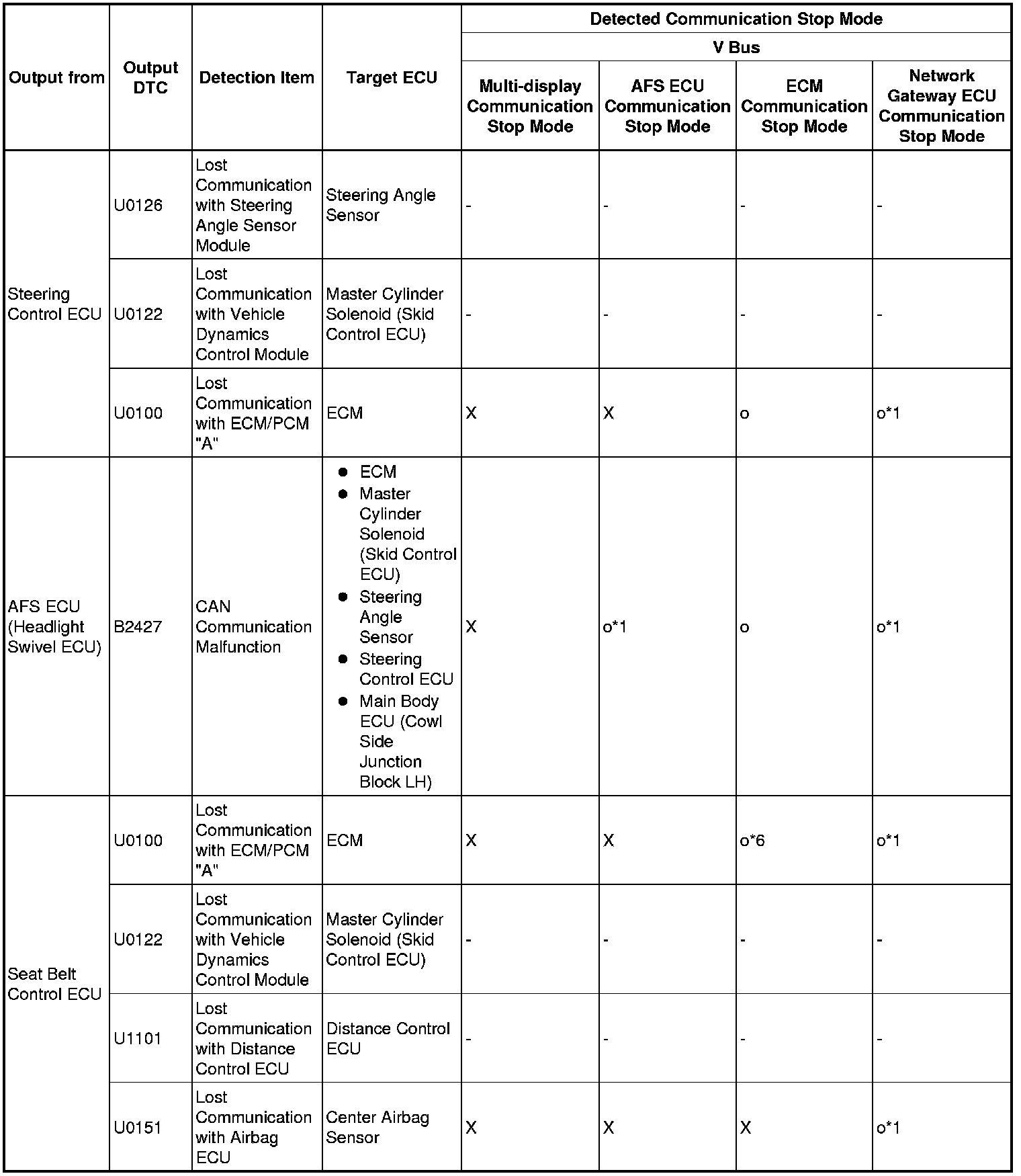 *6: The seat belt control ECU receives diagnosis data from the distance control ECU and stores a DTC.
