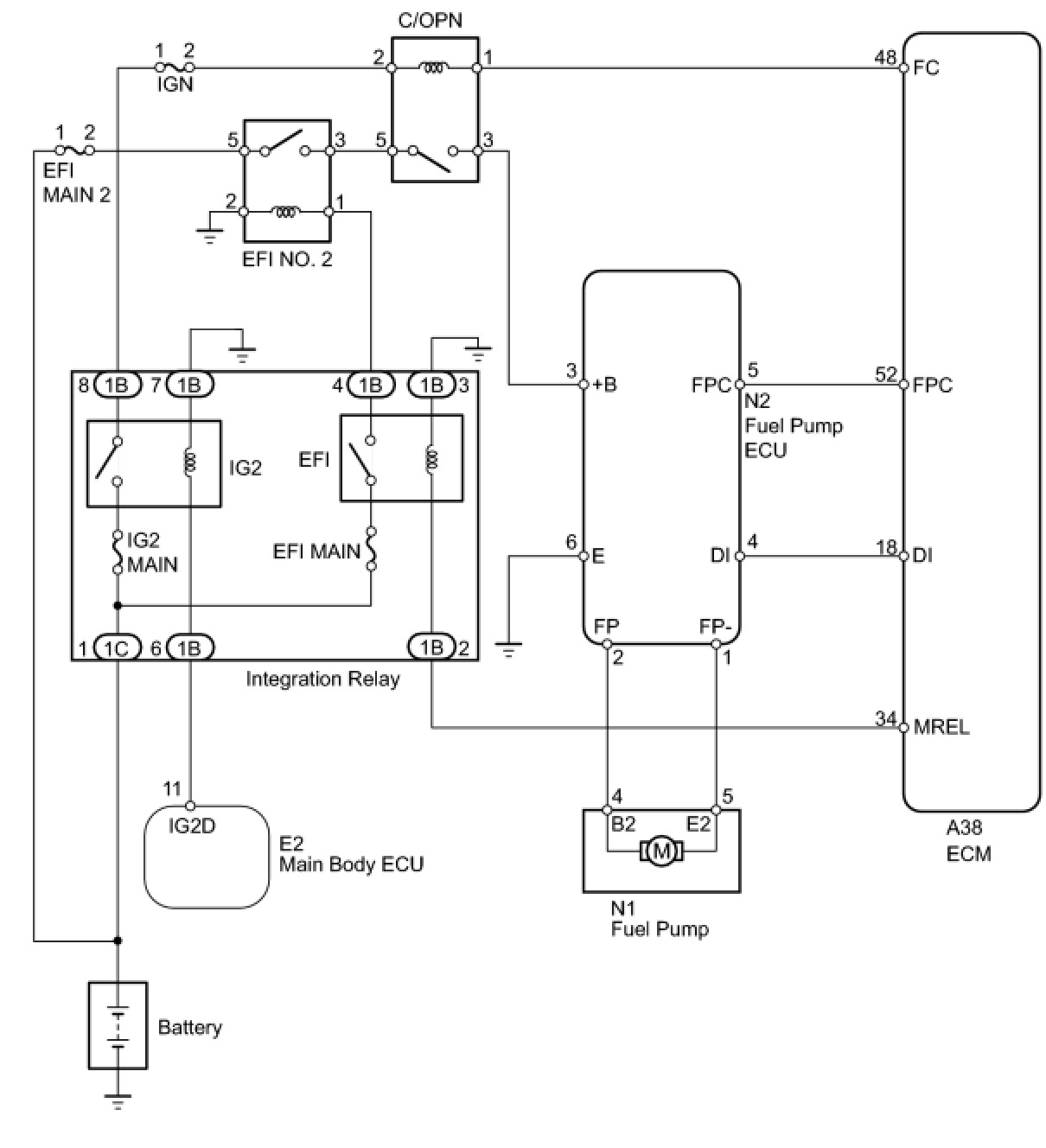 15. CHECK HARNESS AND CONNECTOR (EFI NO. 2 RELAY - INTEGRATION RELAY, BATTERY AND BODY GROUND)