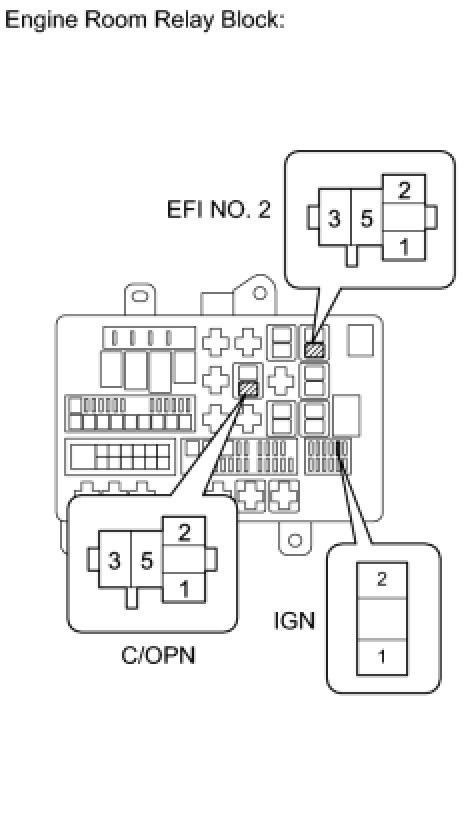 (d) Remove the EFI NO. 2 relay (EFI NO. 2) from the engine room relay block.