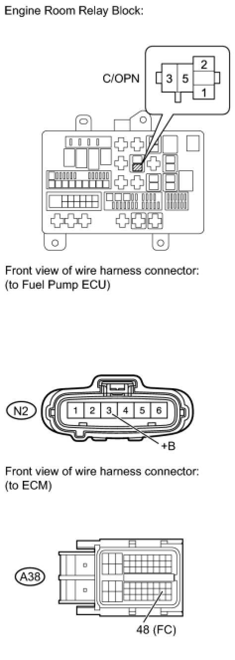 7. CHECK HARNESS AND CONNECTOR (CIRCUIT OPENING RELAY - ECU, FUEL PUMP ECU)
