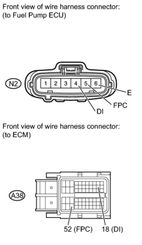 (a) Disconnect the N2 fuel pump ECU connector.