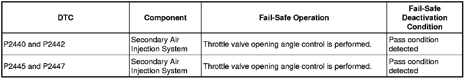 If any of the following DTCs are stored, the ECM enters fail-safe mode to allow the vehicle to be driven temporarily.