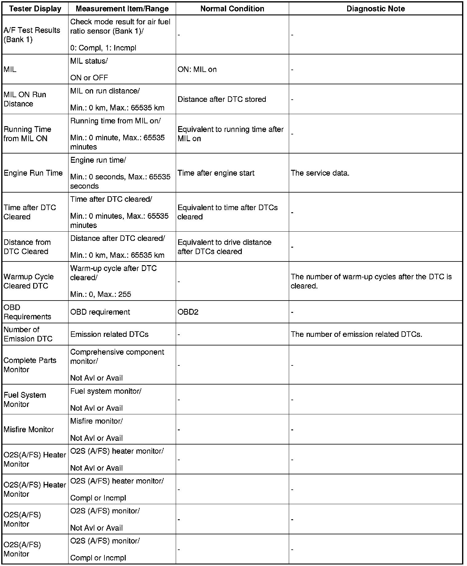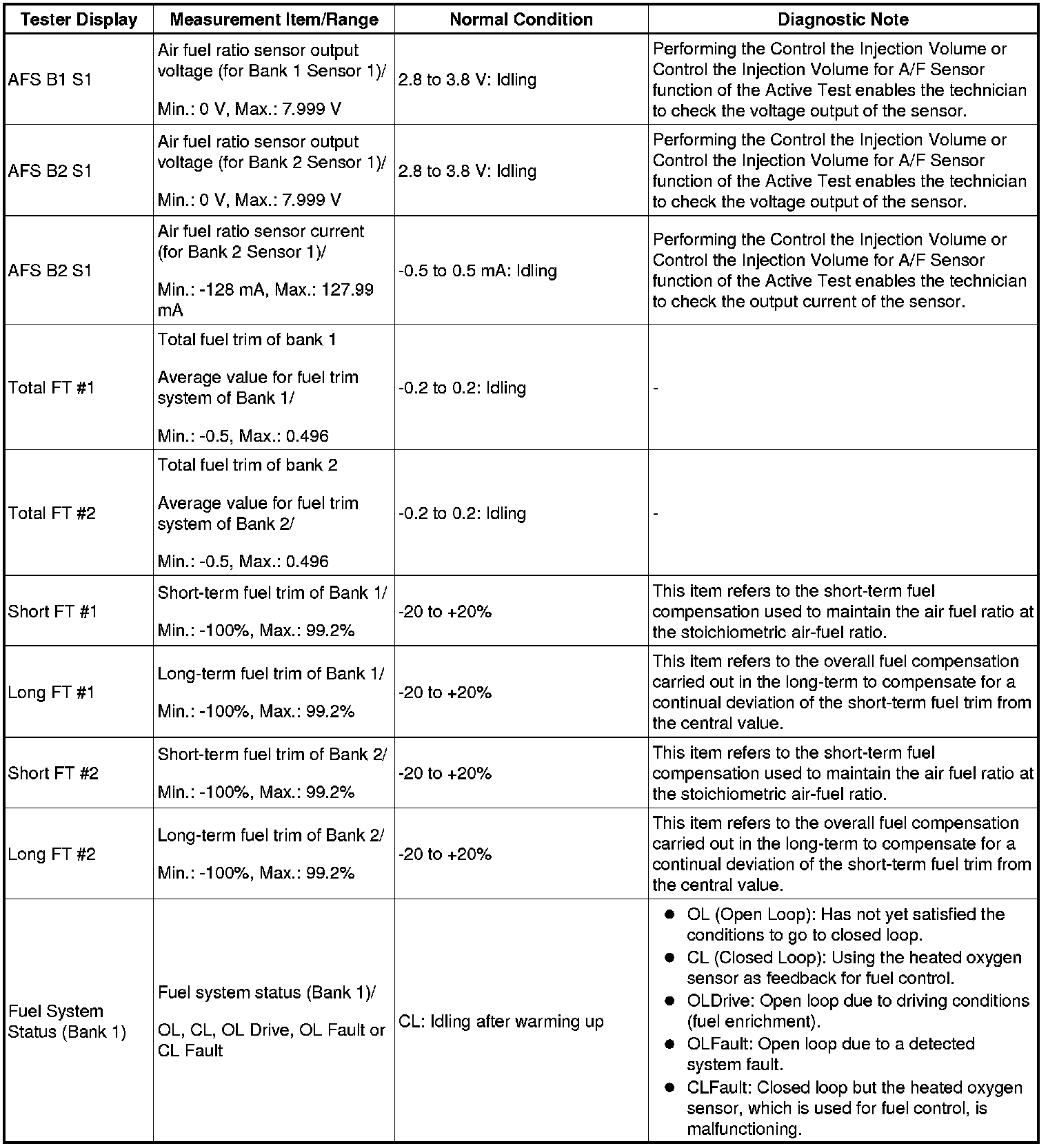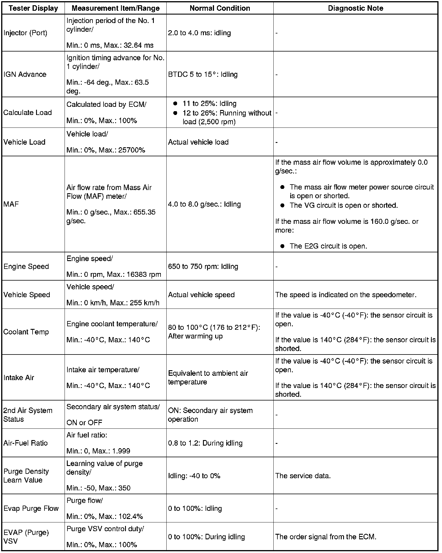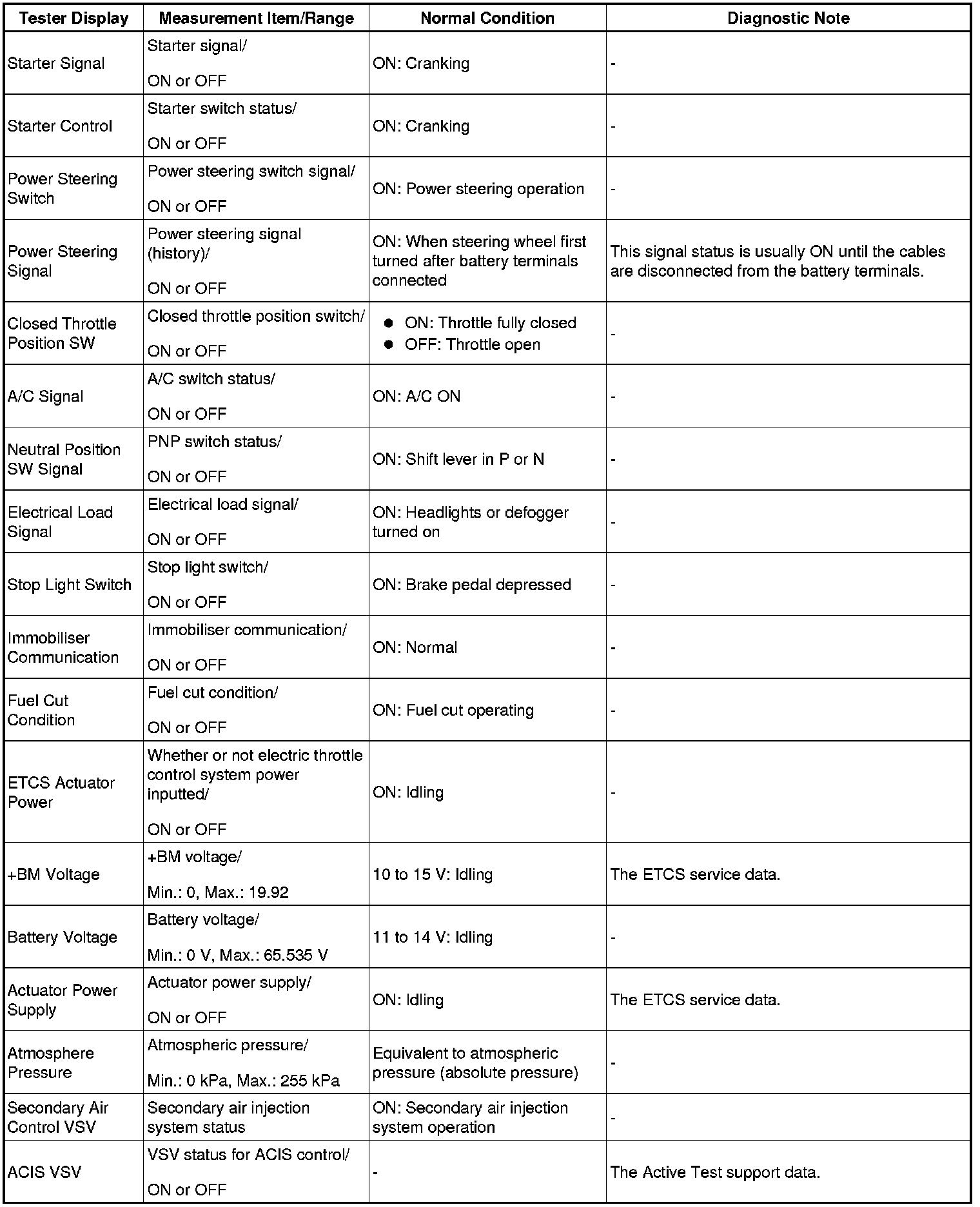 - Normal Condition: If no conditions are specifically stated for "idling", the shift lever is in N or P, the A/C switch is off and all accessory switches are off.