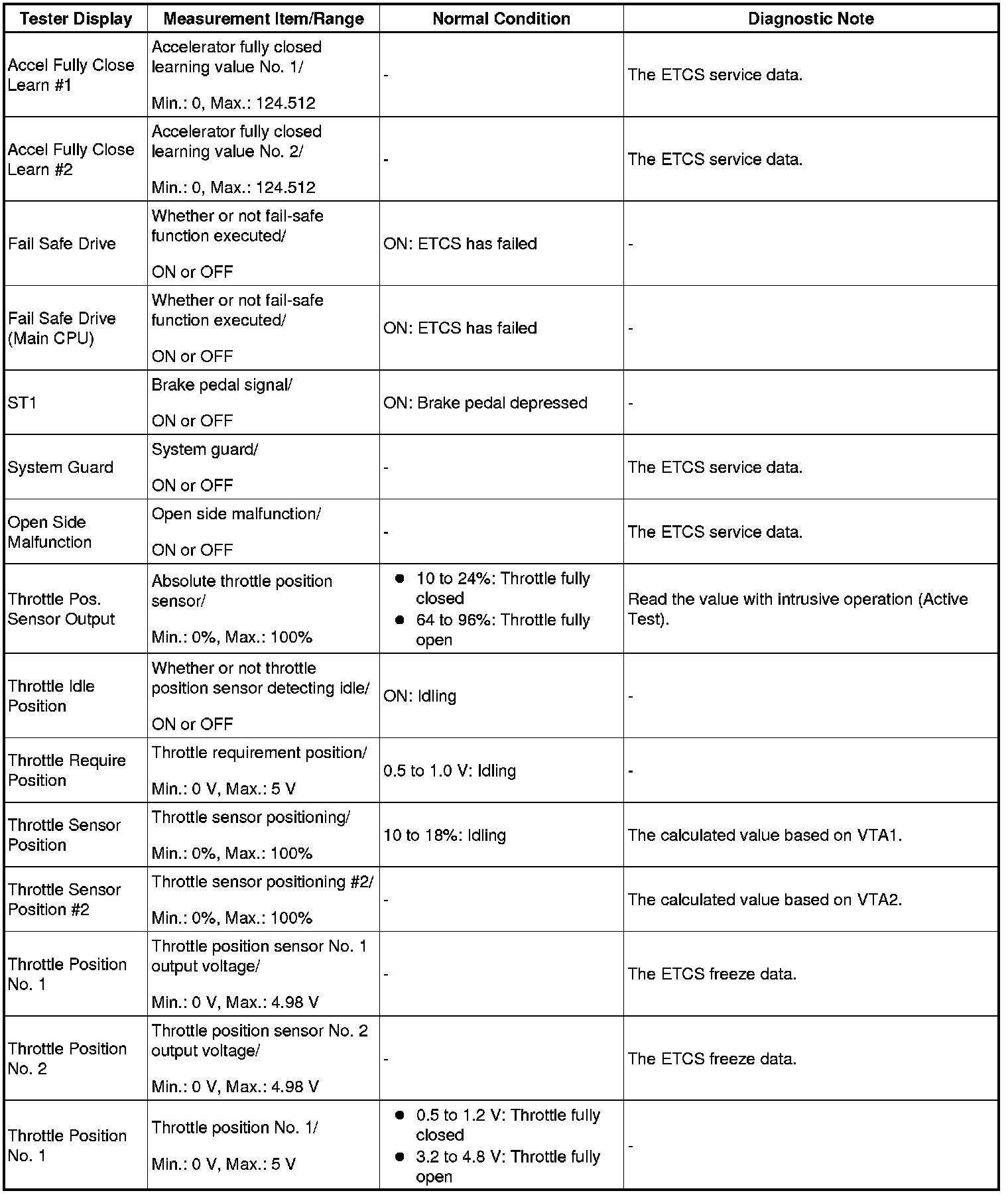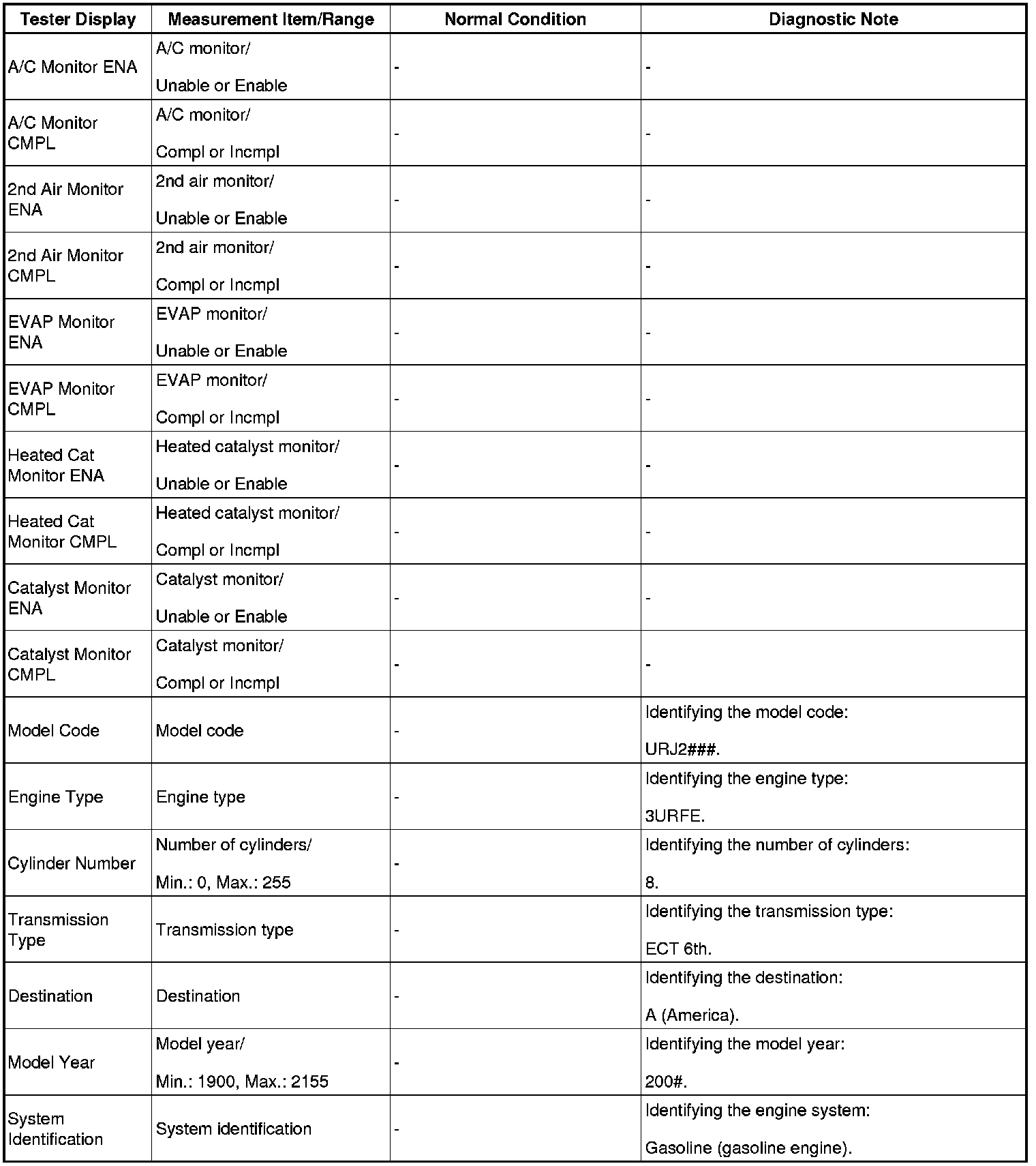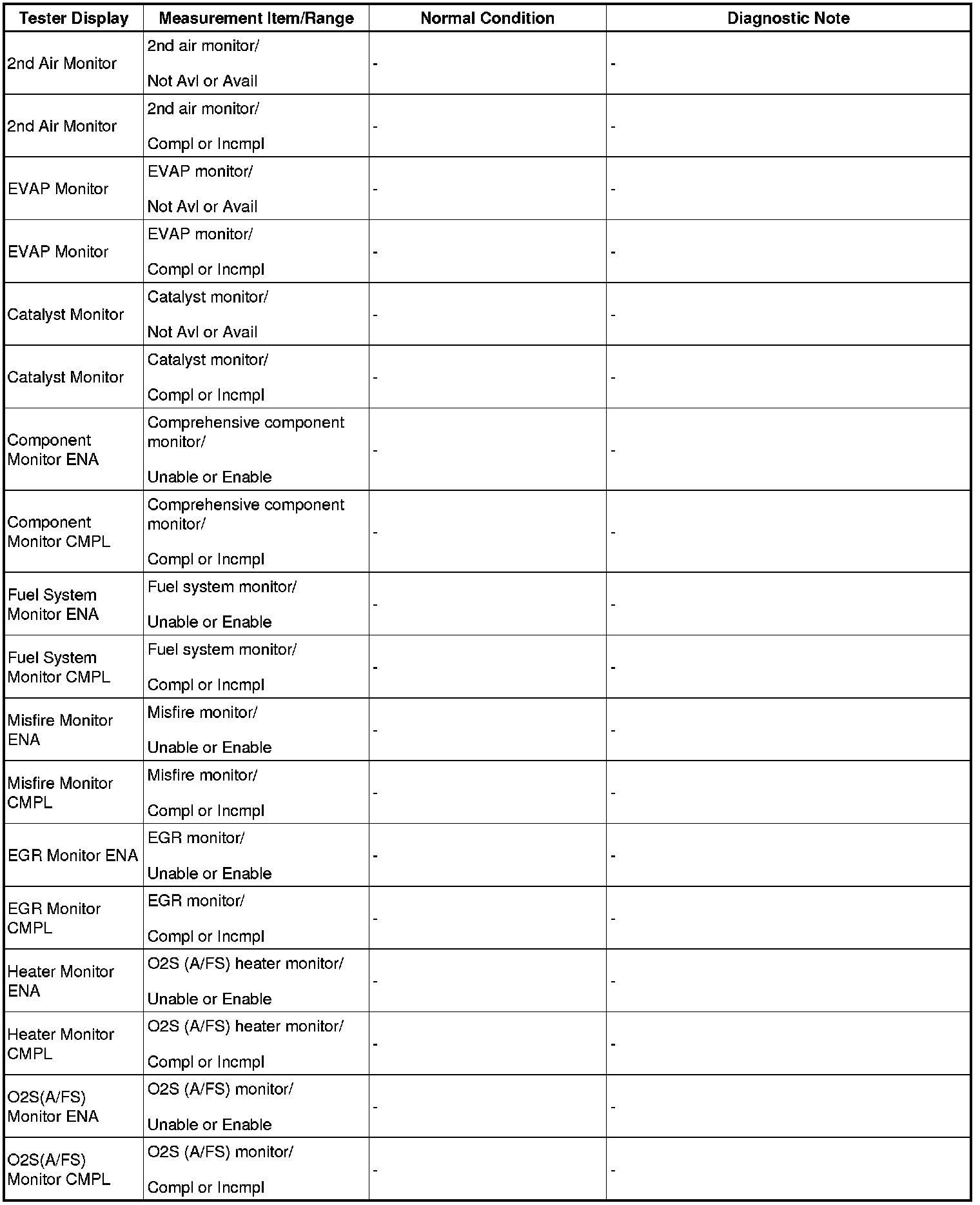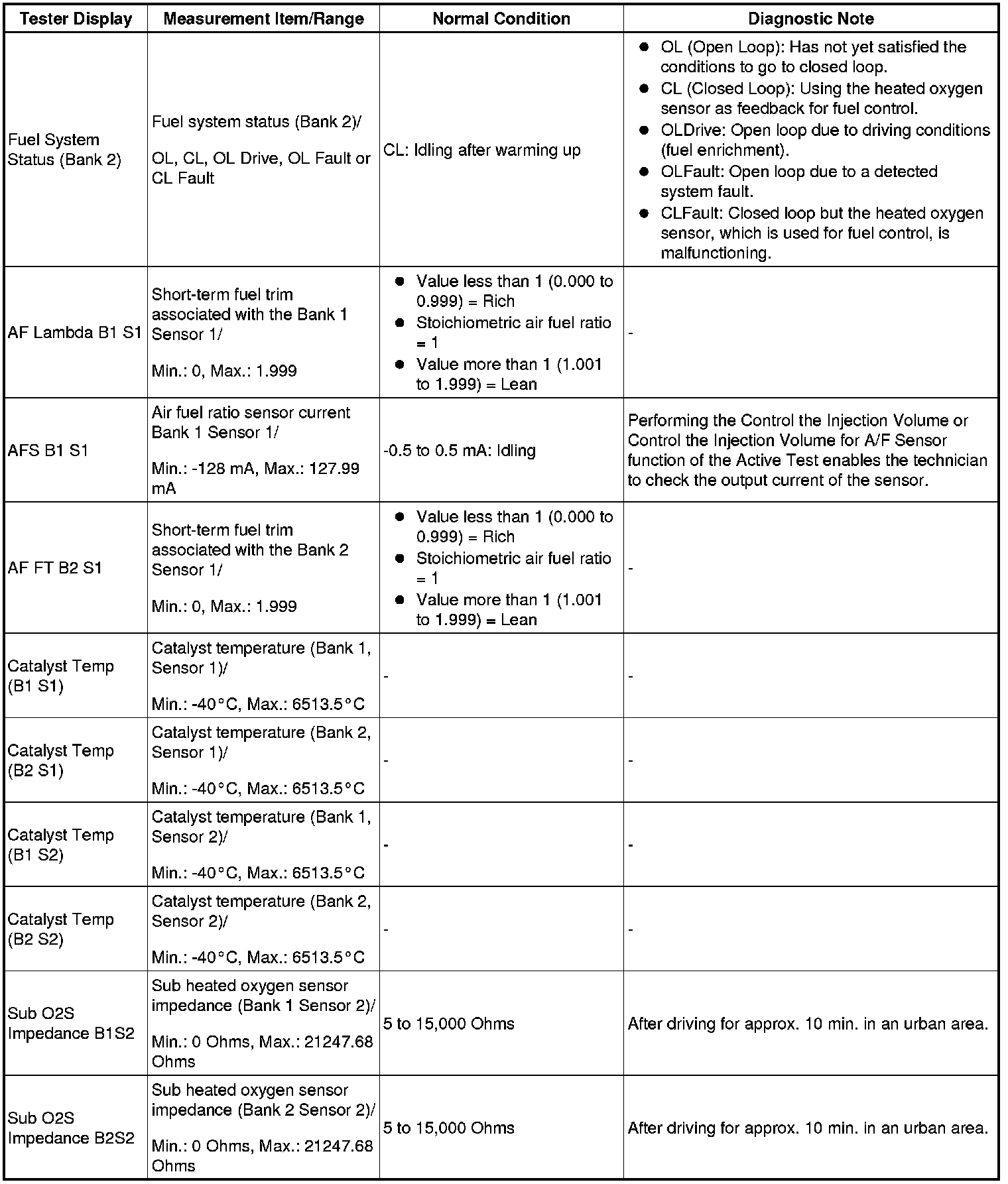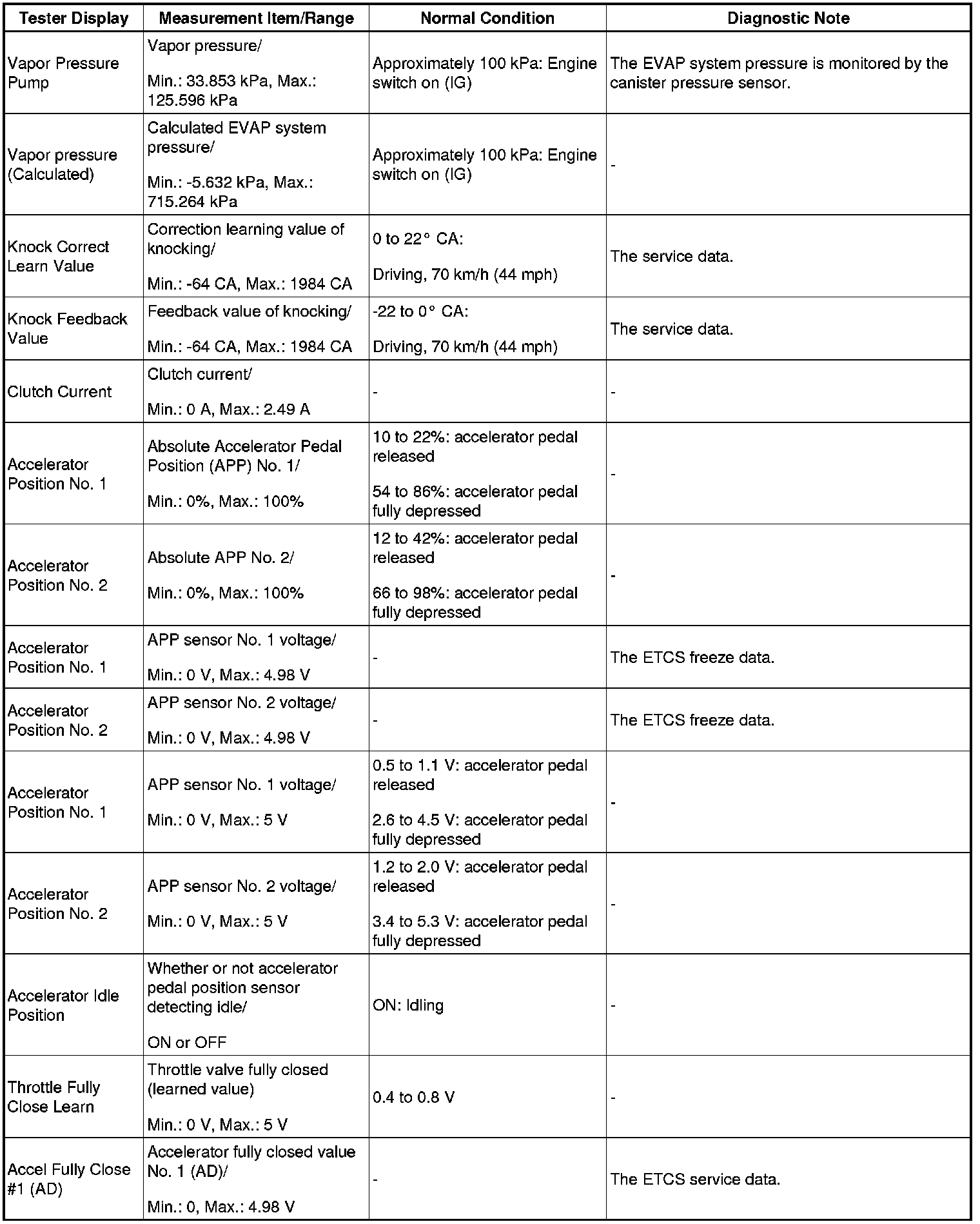 - Normal Condition: If no conditions are specifically stated for "idling", the shift lever is in N or P, the A/C switch is off and all accessory switches are off.