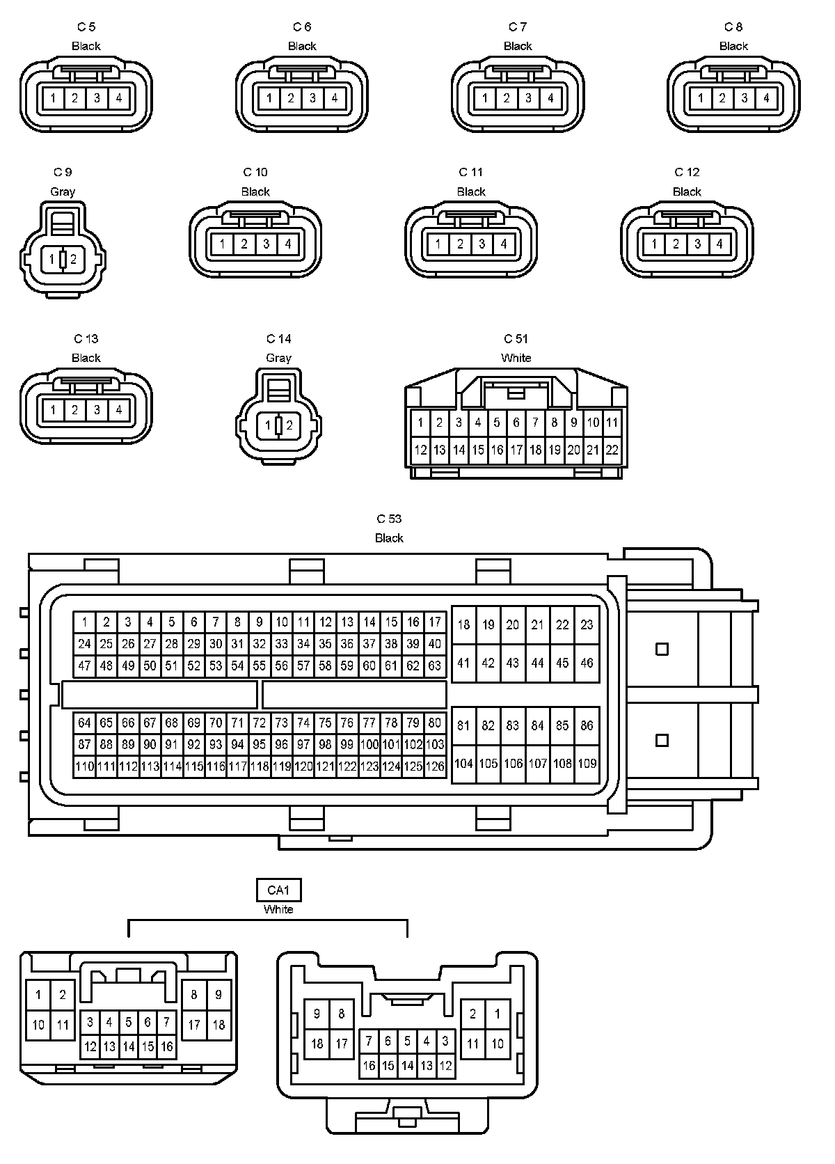 The locations of components, connectors, ground points, and splices referred to within these diagrams can be found at Vehicle Locations.