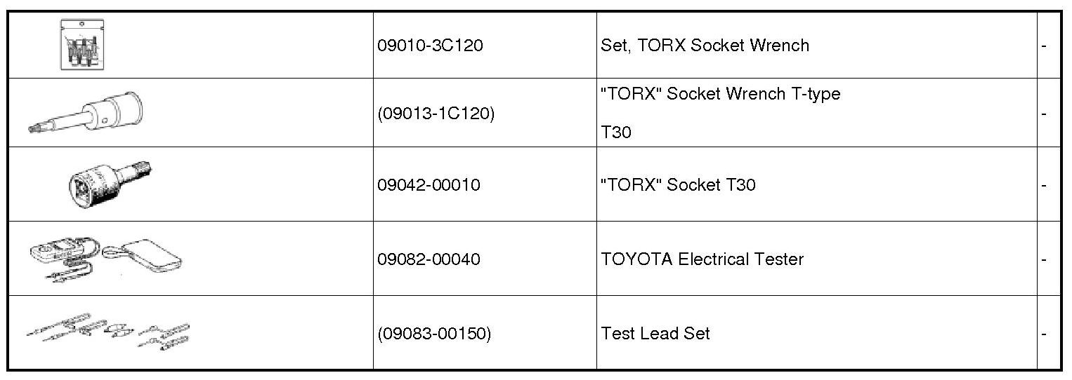 PREPARATION: SUPPLEMENTAL RESTRAINT SYSTEMS: RECOMMENDED TOOLS