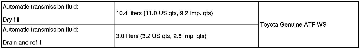 NOTE: Using transmission fluid other than Toyota Genuine ATF WS may cause deterioration in shift quality, locking up of your transmission accompanied by vibration, and ultimately damage the transmission of your vehicle.
