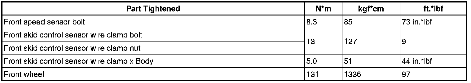 SPECIFICATIONS: BRAKE CONTROL / DYNAMIC CONTROL SYSTEMS: TORQUE SPECIFICATIONS
